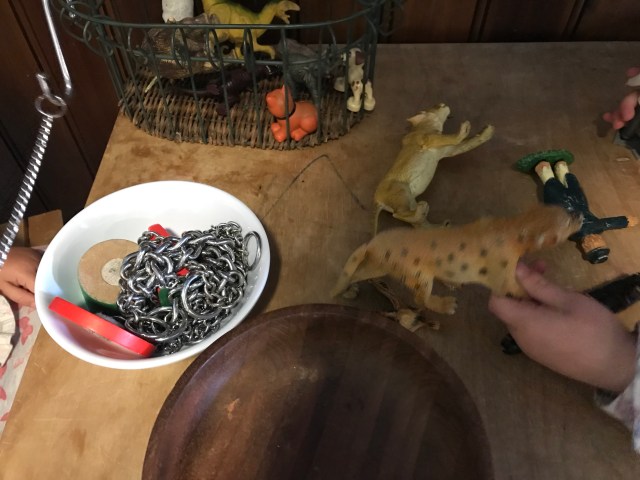 Th children were using the animals in their role play. Acting out their ideas through the animals, having lots of discussions and sharing of ideas.