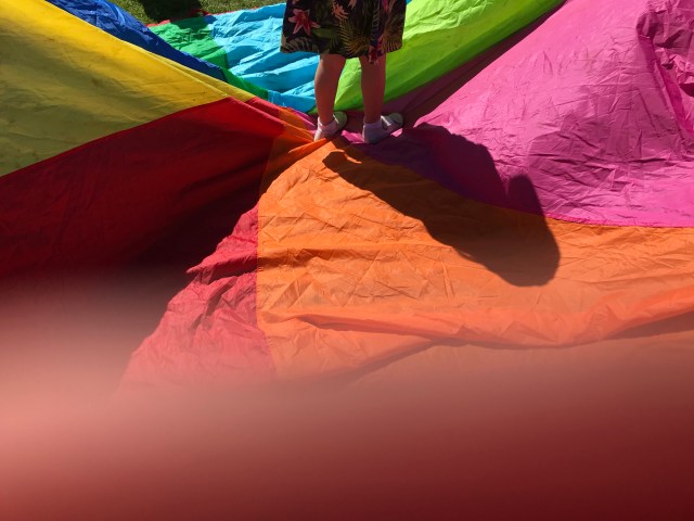 Parachute play. The children got the parachute out and played cat and mouse. In the end we had 5 mice and 2 cats trying to catch the mice. Lots of giggles with the rest of us trying to wriggle the parachute.