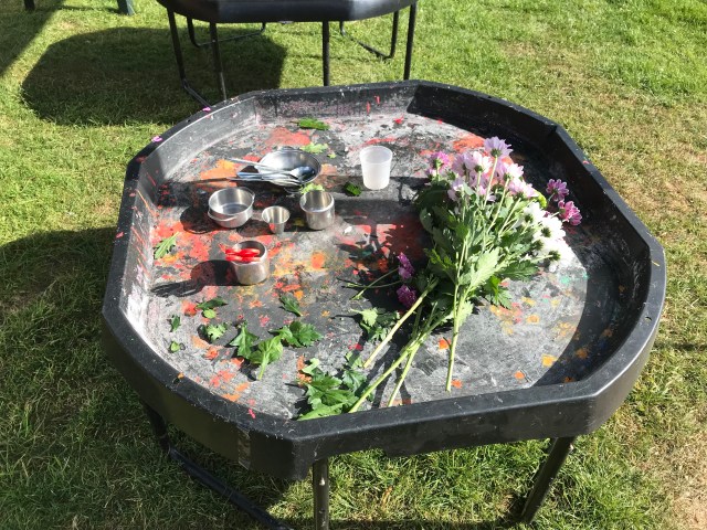 What are they going to make? The ideas are endless and we encourage the children to use the curiosity to explore what we put out. Could it be potions, dinner or something else?
