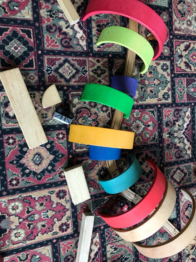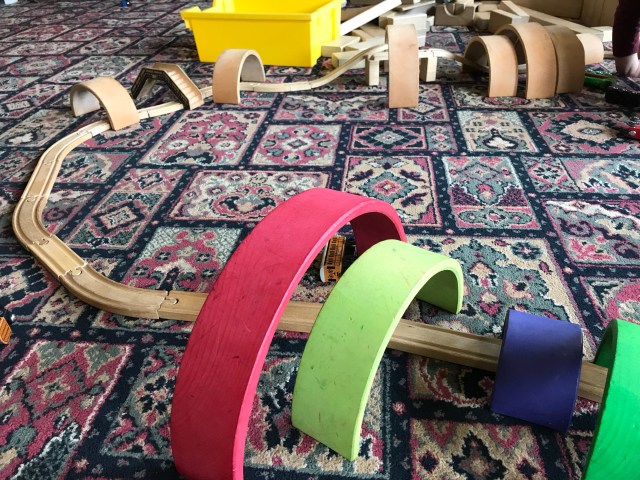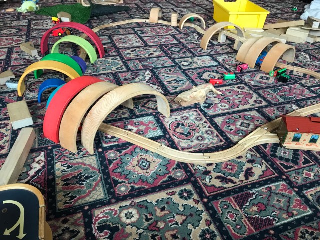 A little one built a fabulous train track and then added lots of rainbow bridges. He was really busy for ages and it was his 3rd day at Woodentops.