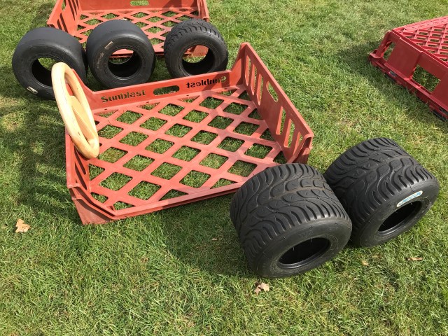 The children used their imagination and inspiration from the equipment around them to build a car. They took turns in driving it too.