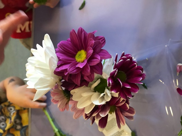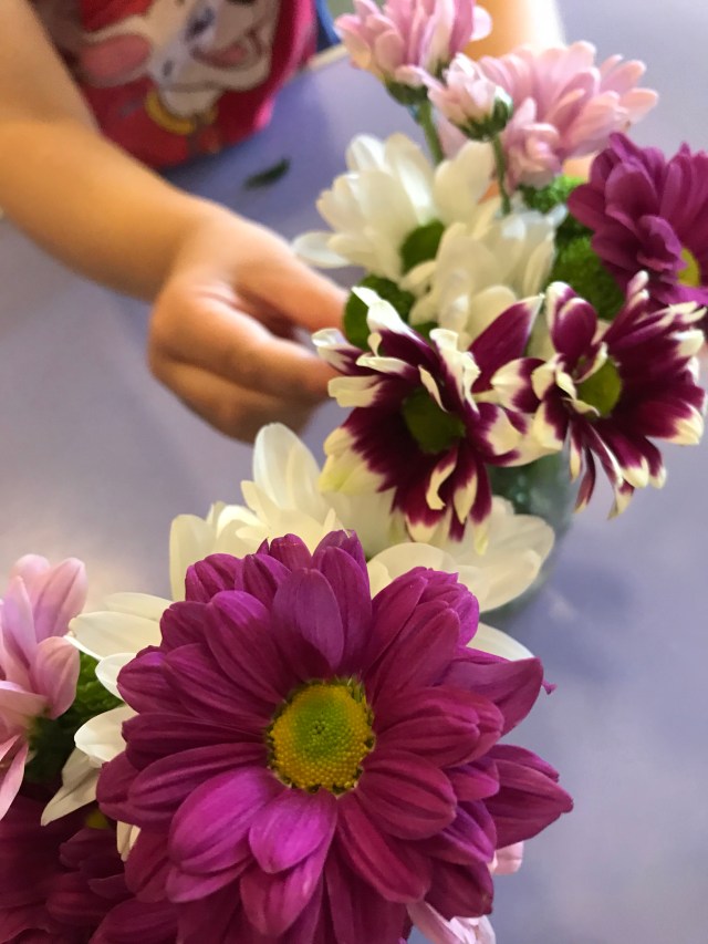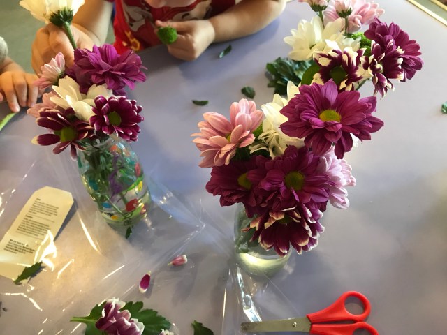 On Monday we cut our flowers and put them in their little vases. The children take great pride in their flowers and look after them throughout the day