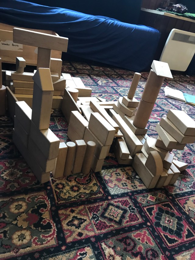 A magnificent build by one little one who chatted about his design as he built it. He worked how to balance the bricks by trial and error. This was the beginnings of a crane built on Monday.