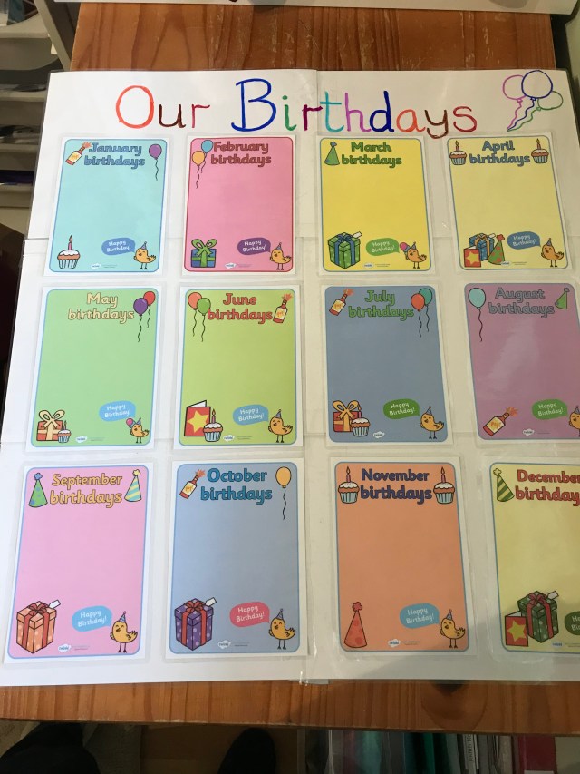 This week we put up our revamped birthday board. The children love looking for theirs and their friends pictures on the board. It’s created a lot of discussion.