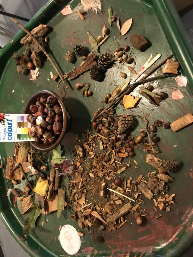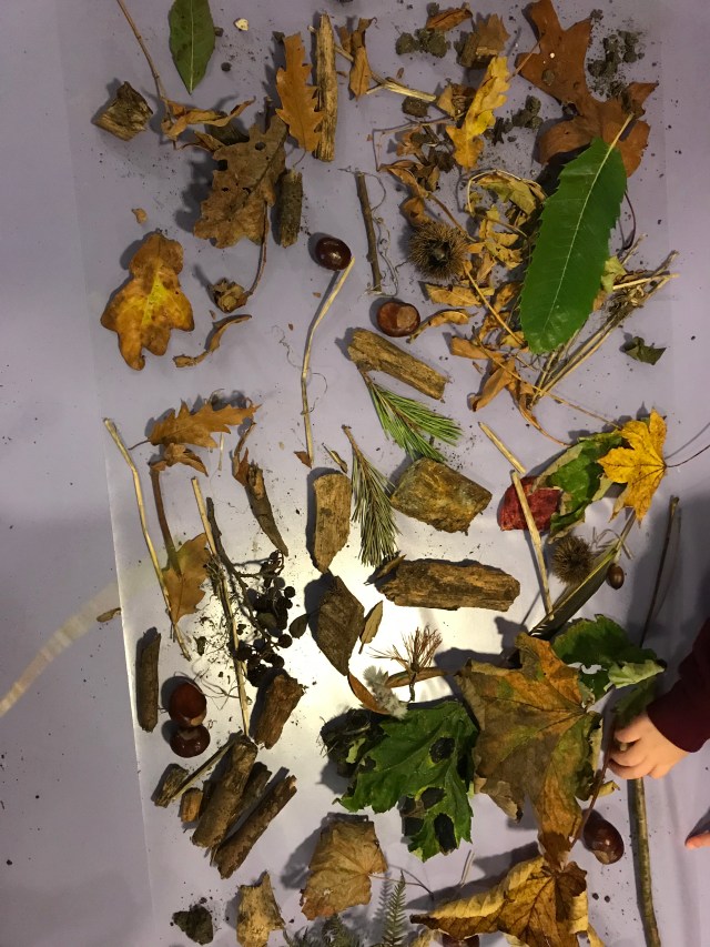 Our treasure bags came back full of goodies that our families had collected on their walks over half term.