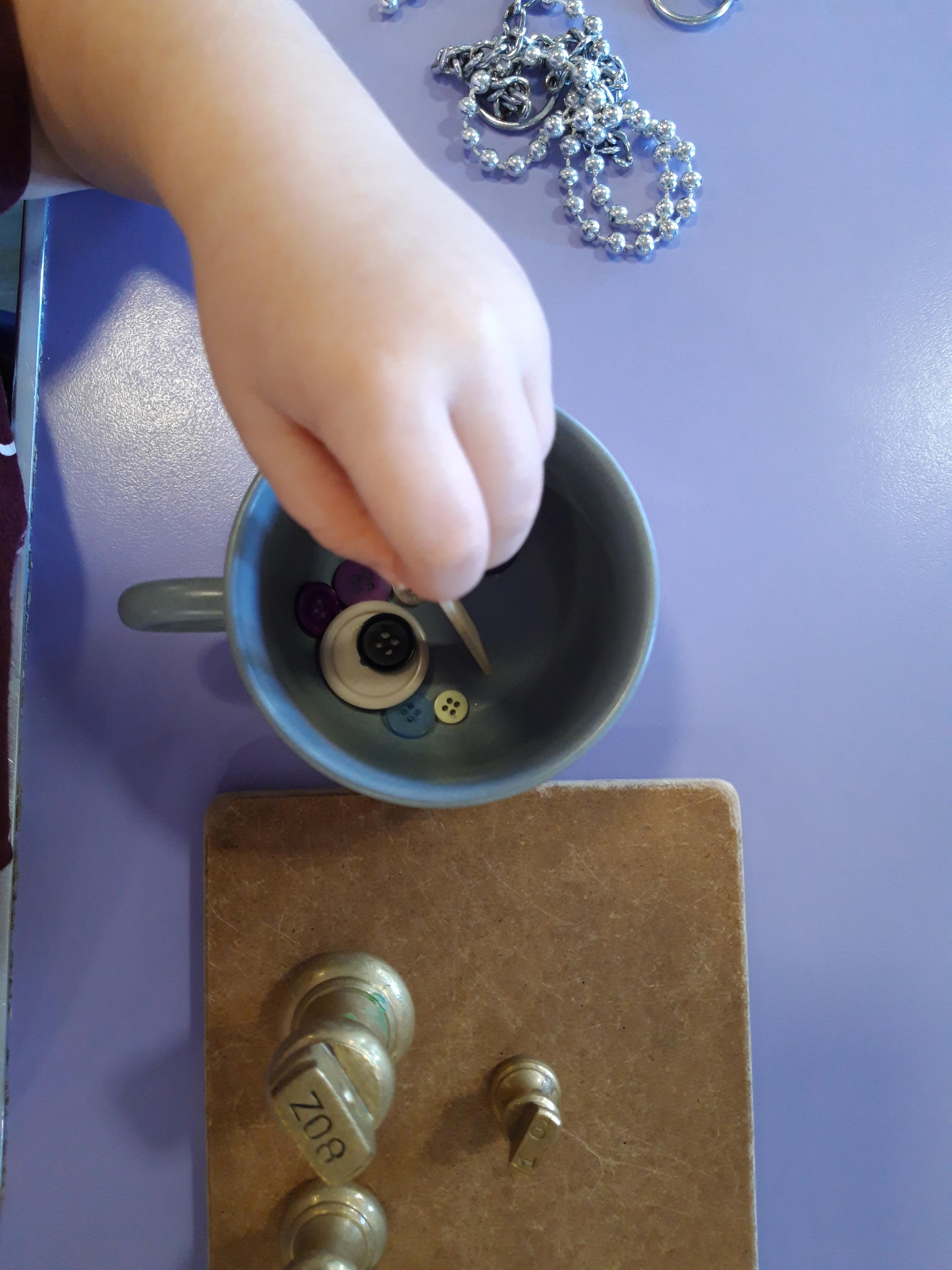 The Children sorted through the heavy weights and the buttons, doing lots of matching games.