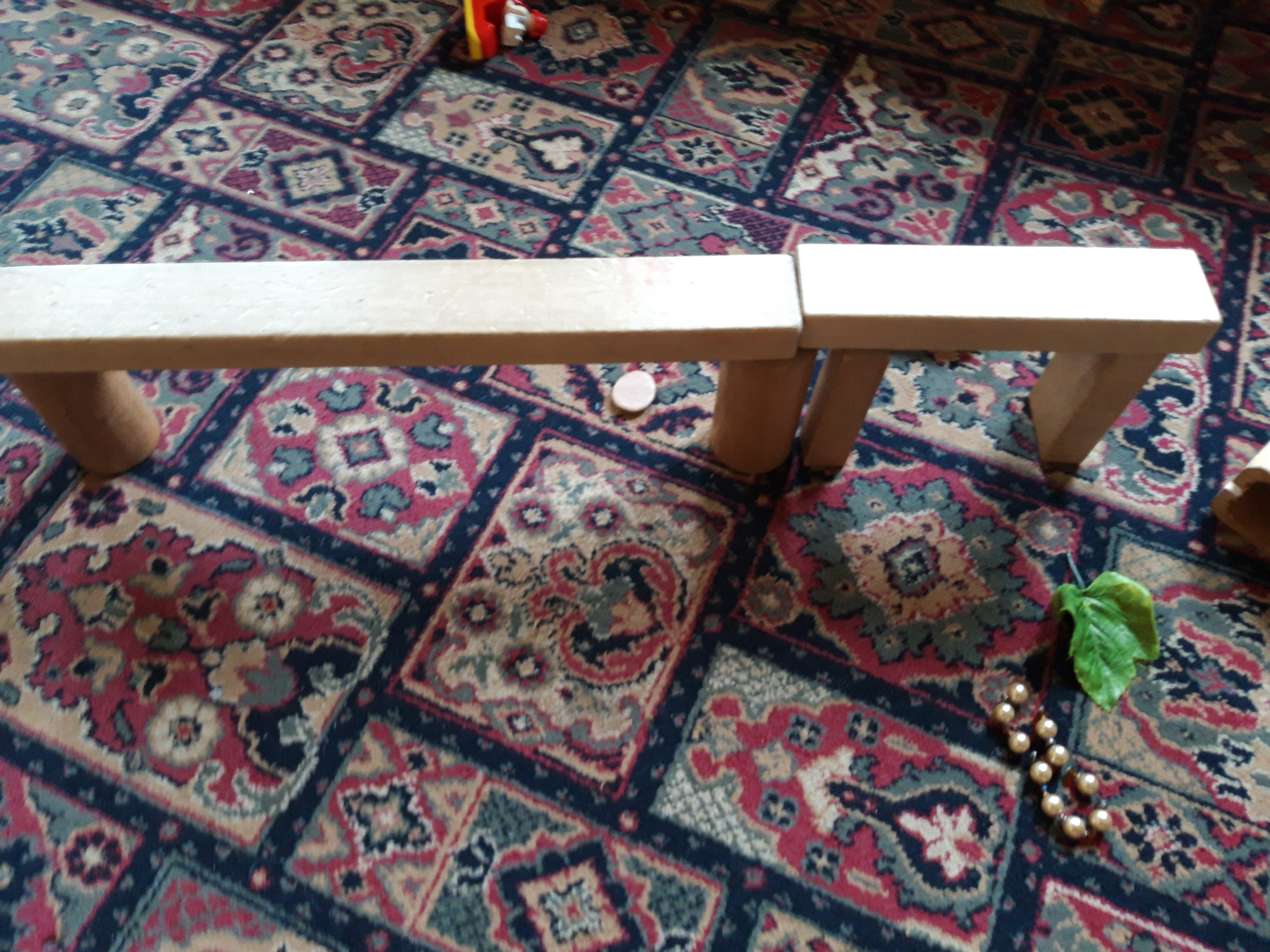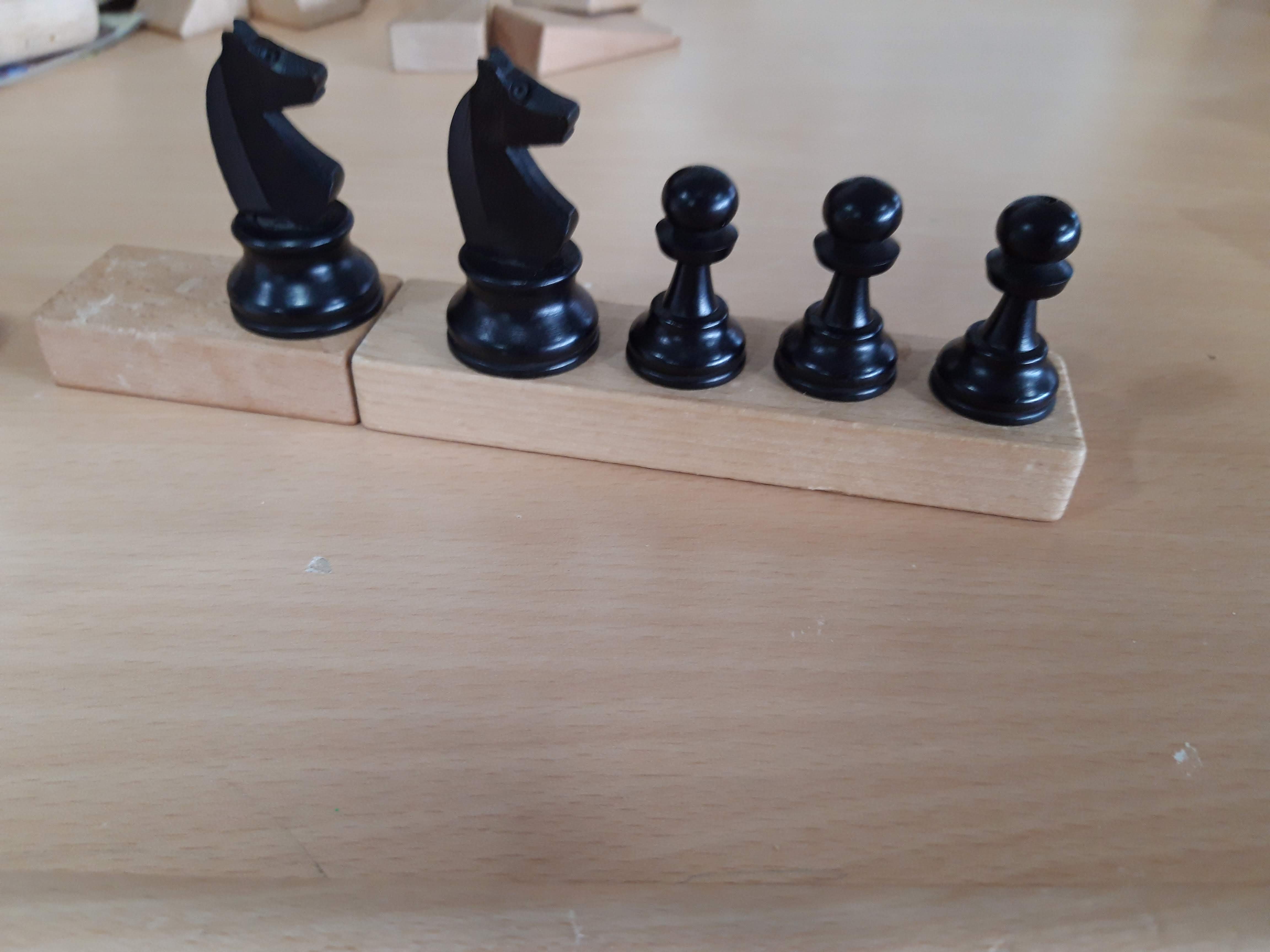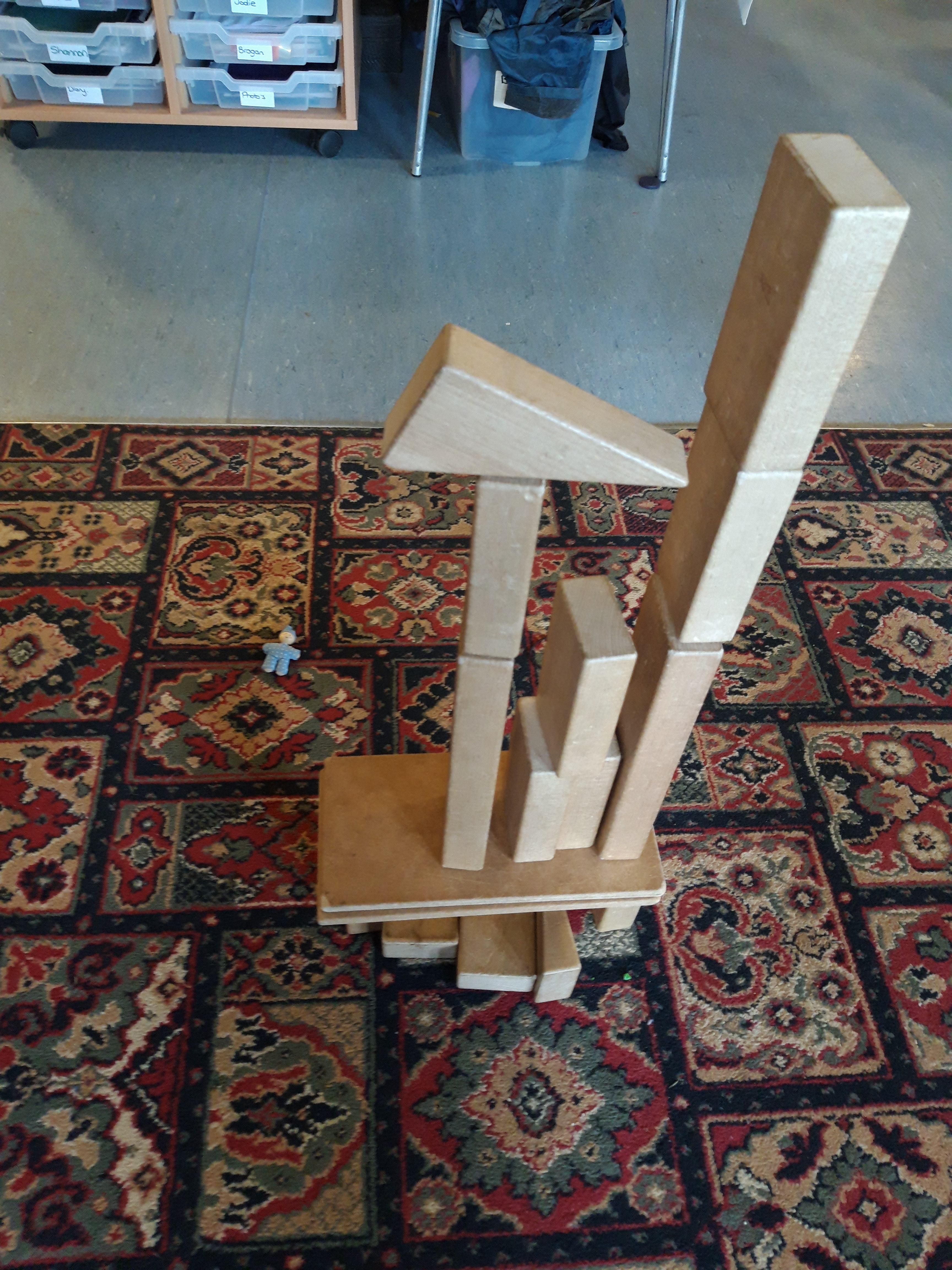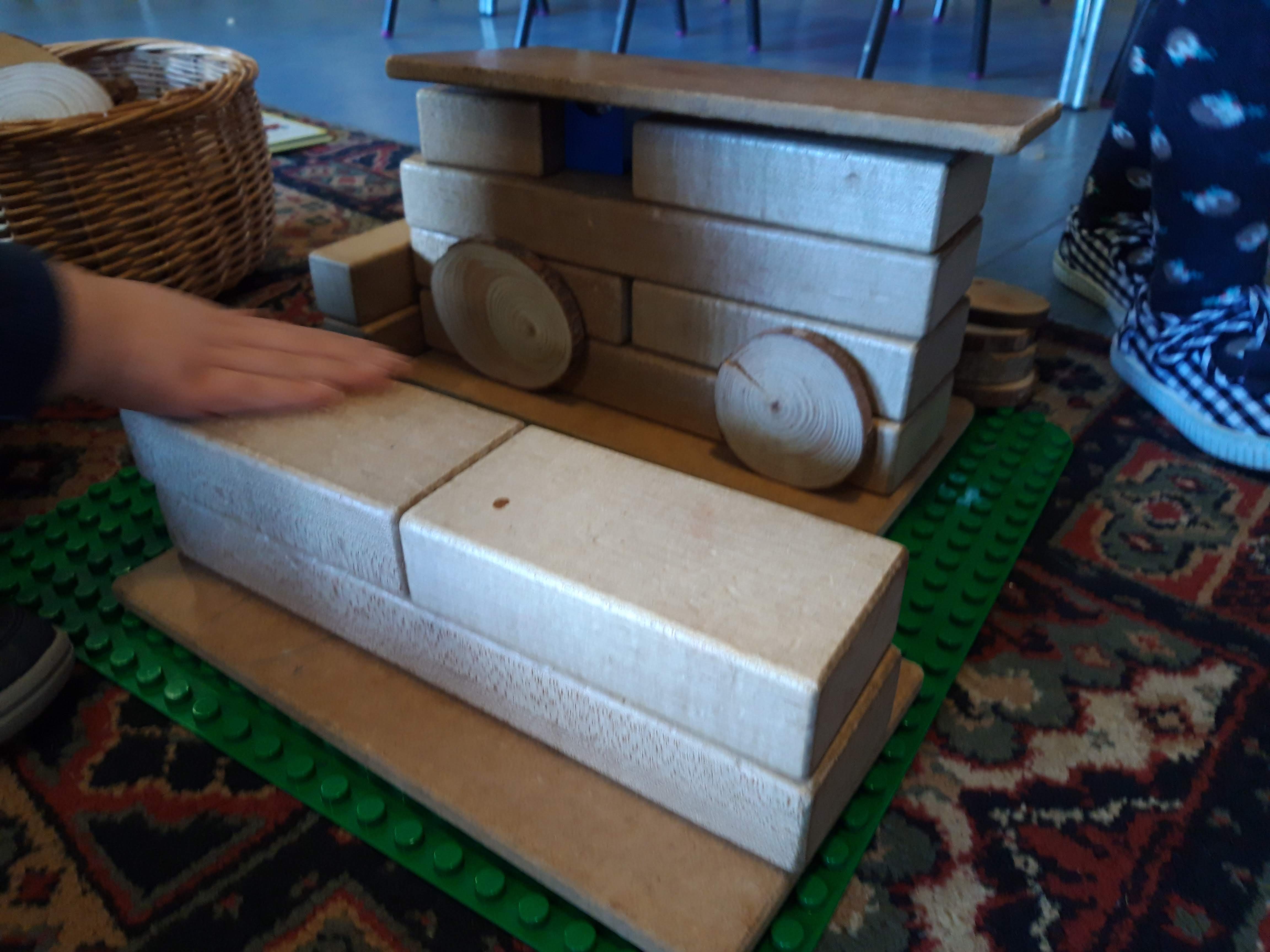 We added wooden chess pieces to the display and the children lined them up and added them to their buildings.