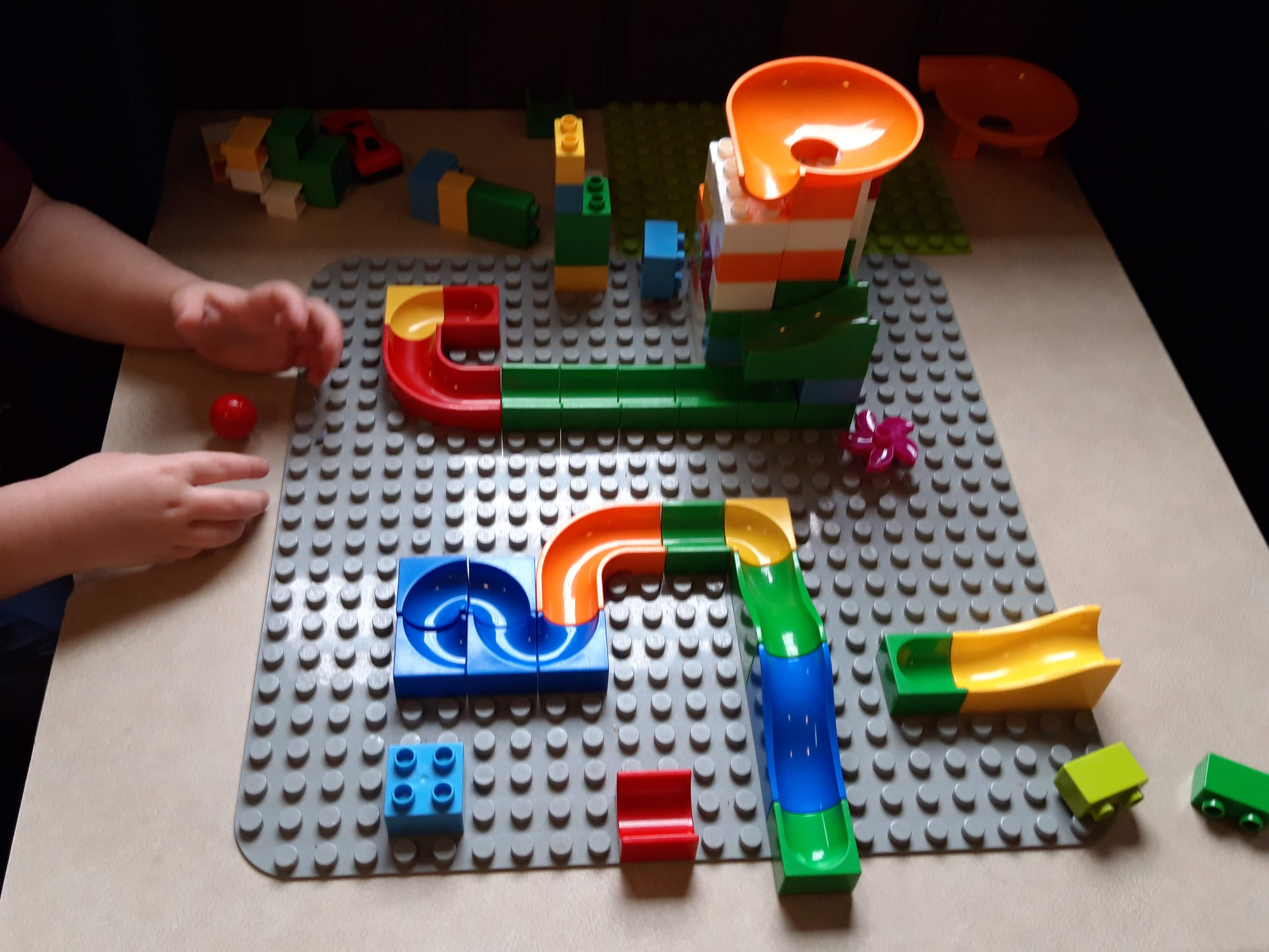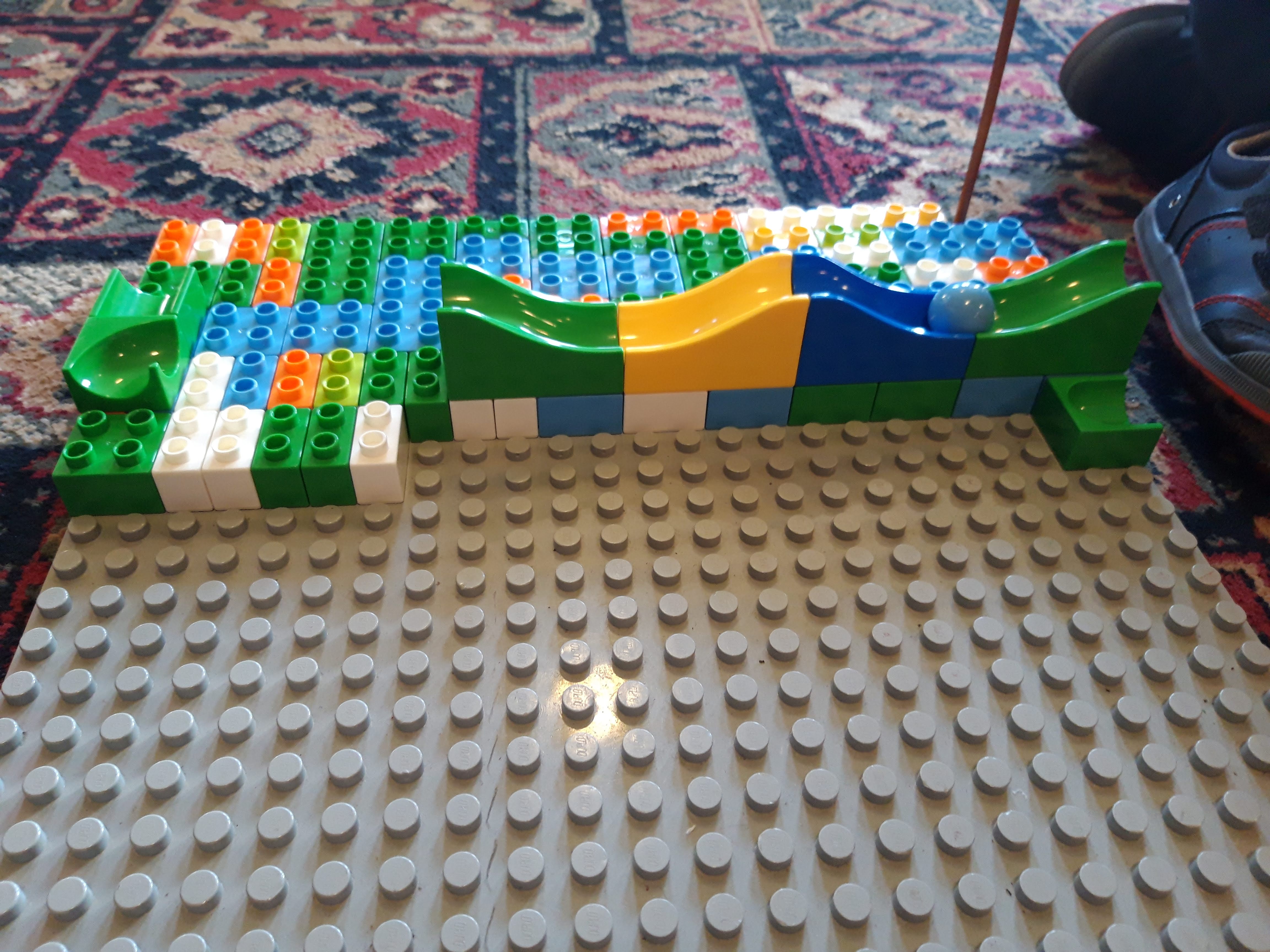 Making a marble run- the children work which balls fit in the run and move fast. they have found out things that don’t roll, do not move in the runs.
