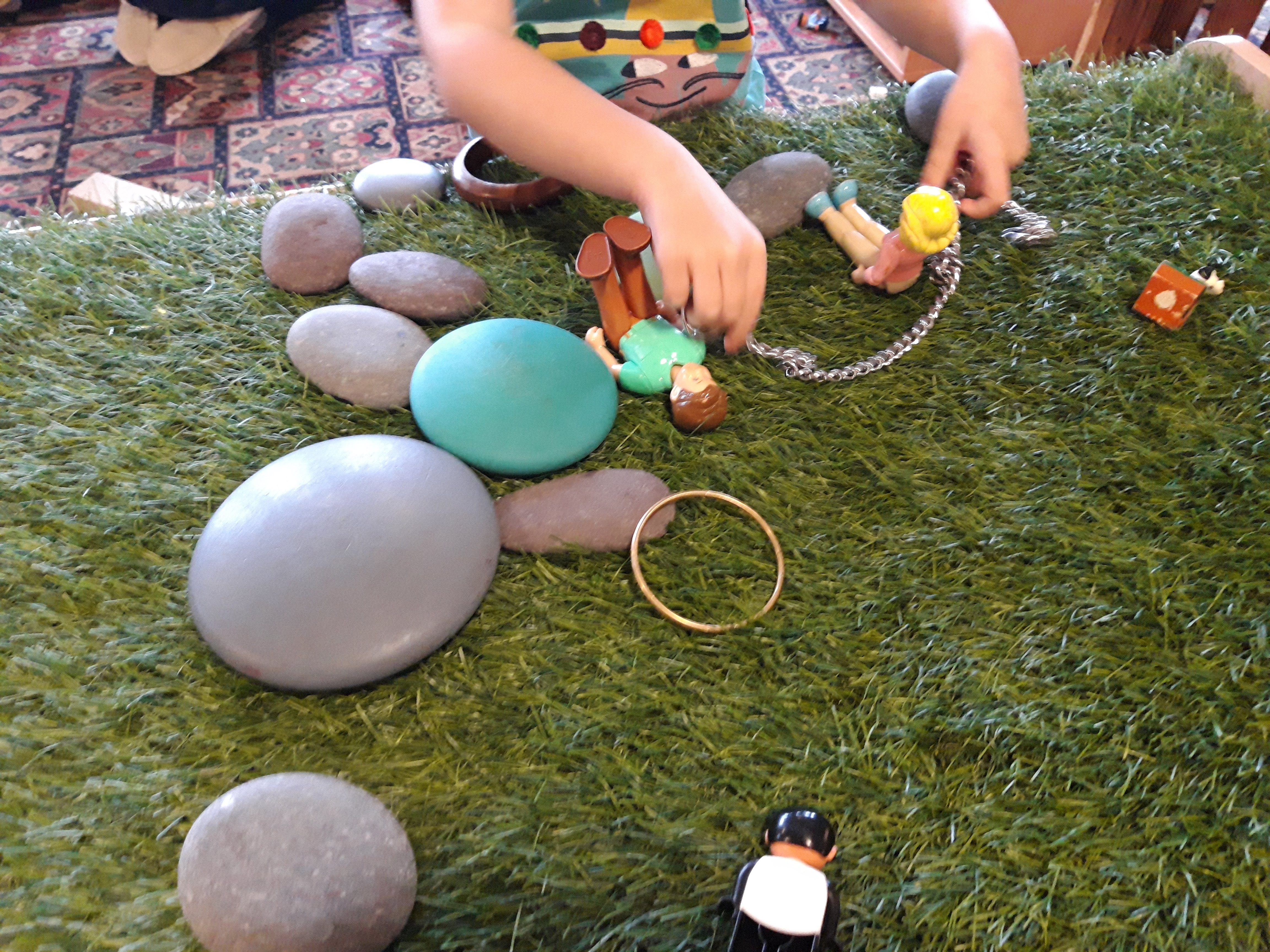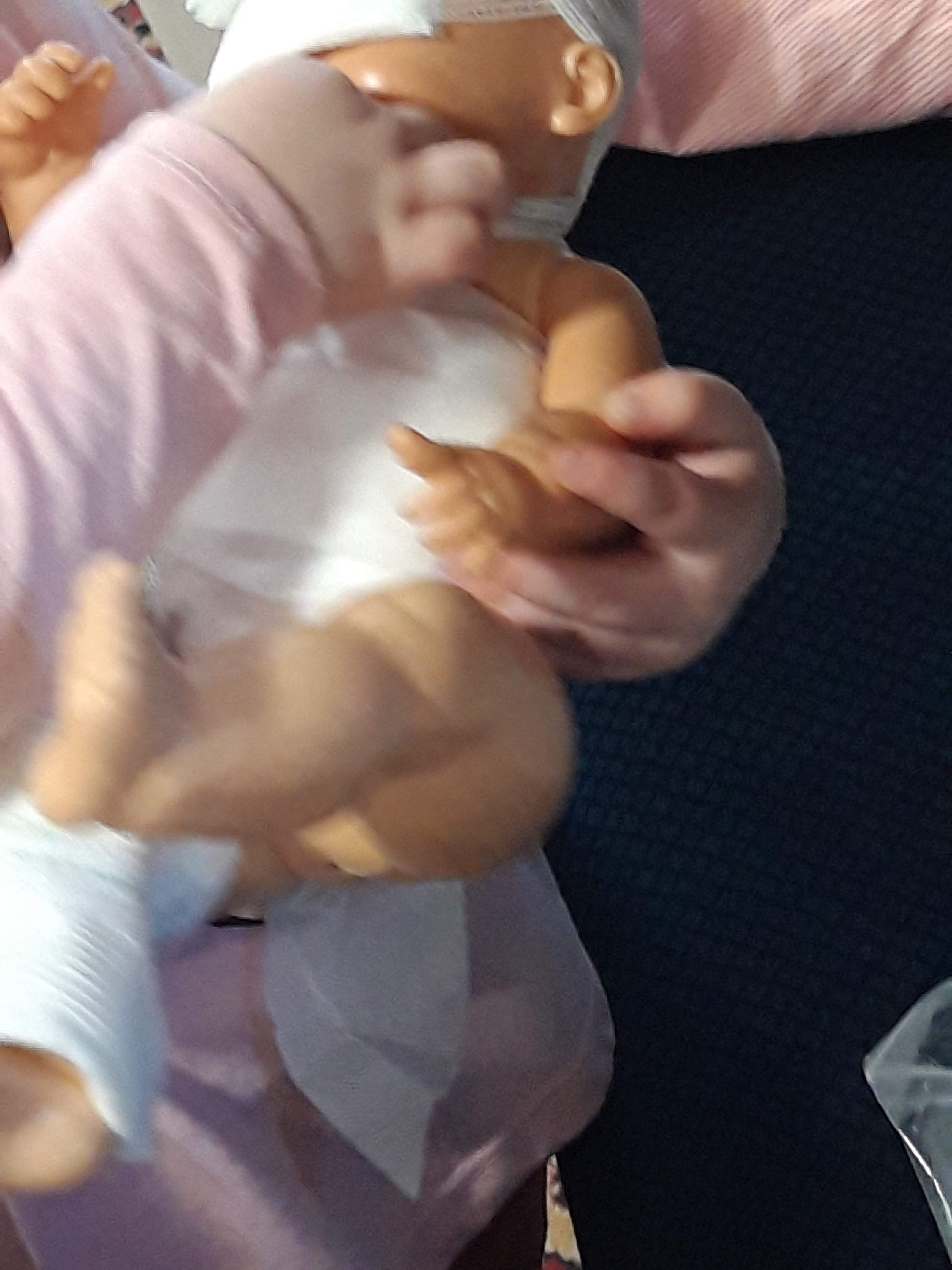 So we found a very poorly baby that needed bandaging up. The children found some micropore tape and made sure the baby was wrapped really well in the bandage and taped up. The baby felt lots better later after lots of cuddles.