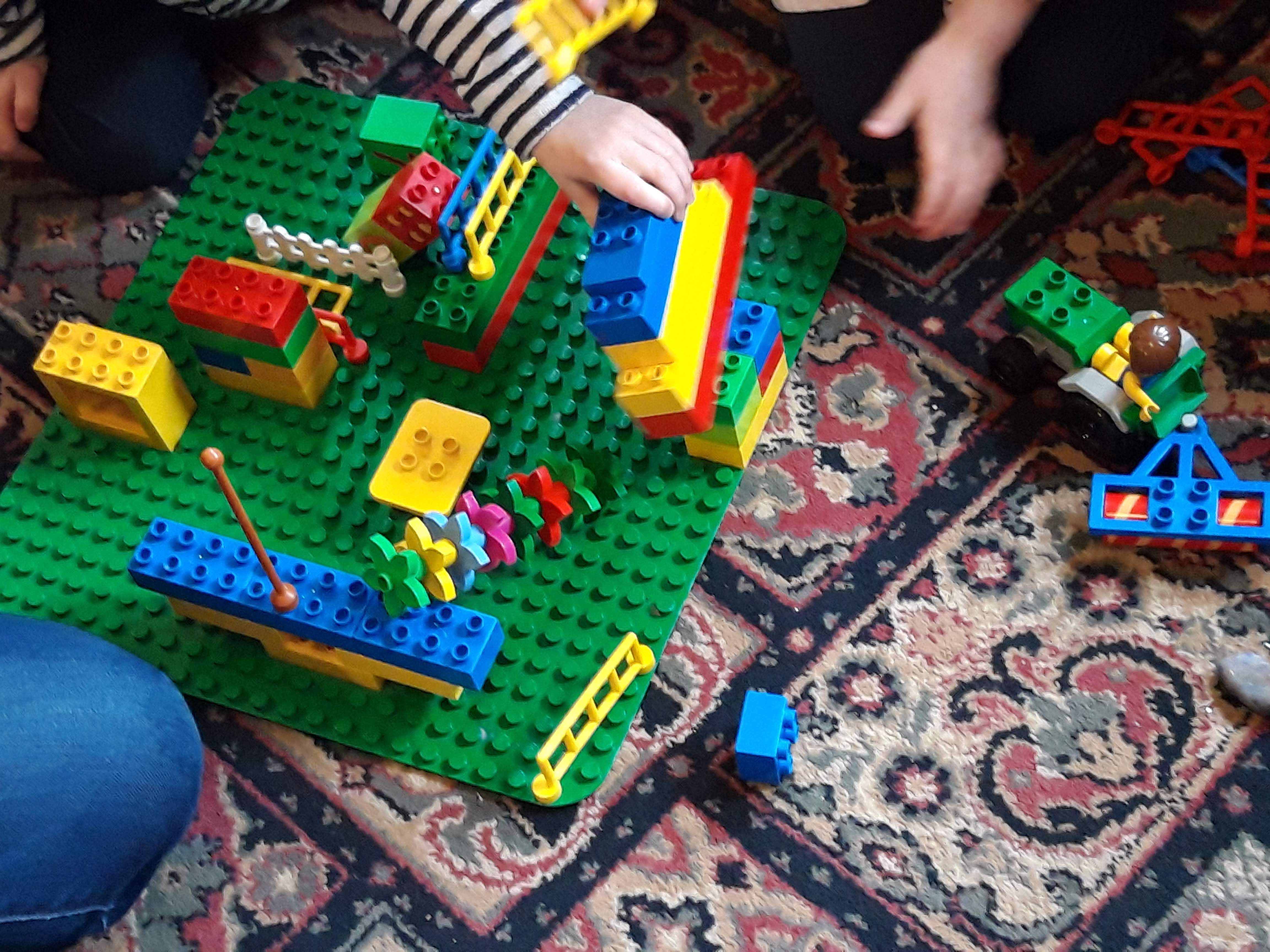 This was a great invitation to play and learn- The children had a photo of different types of building and lots of different sized blocks.