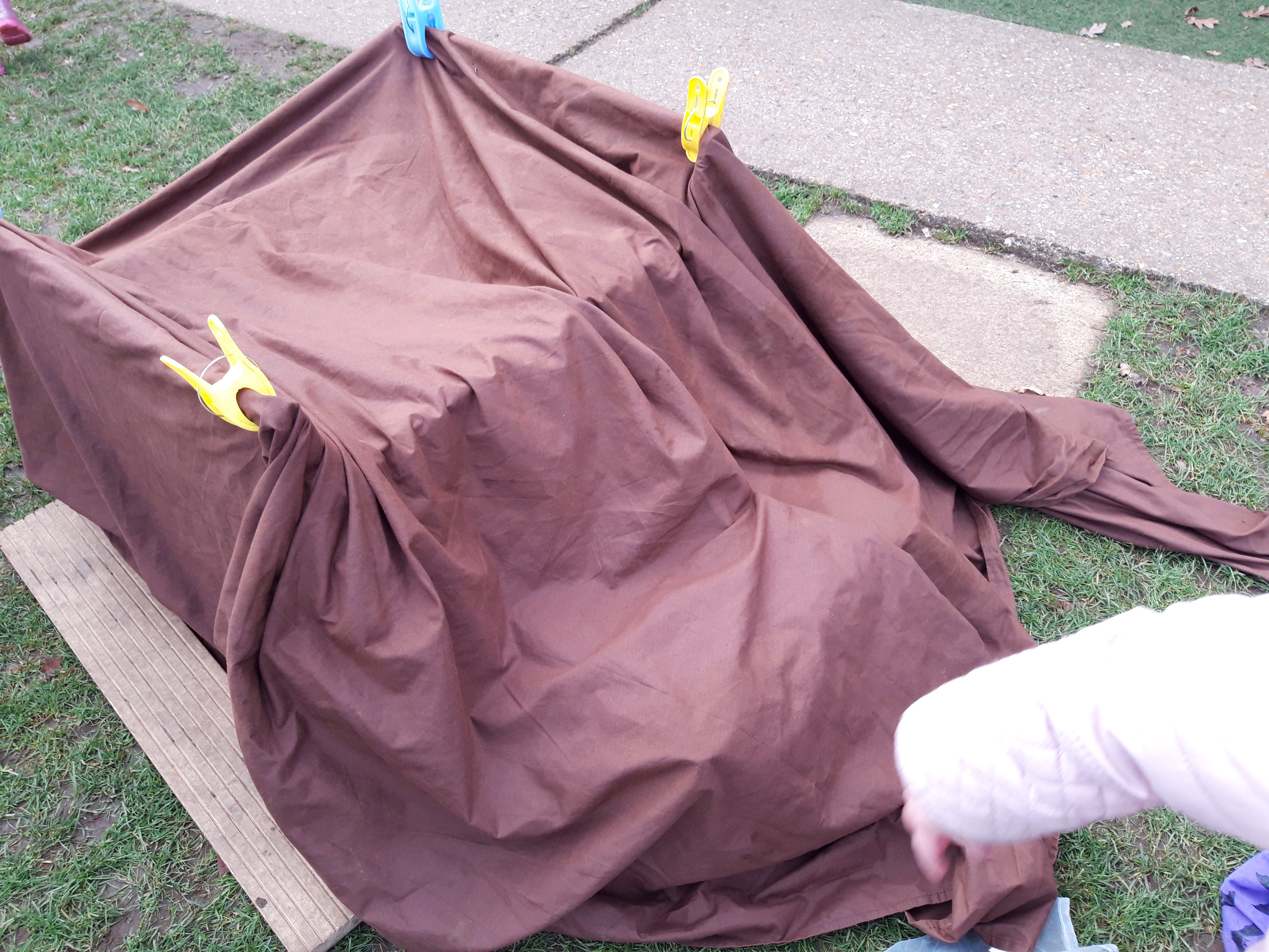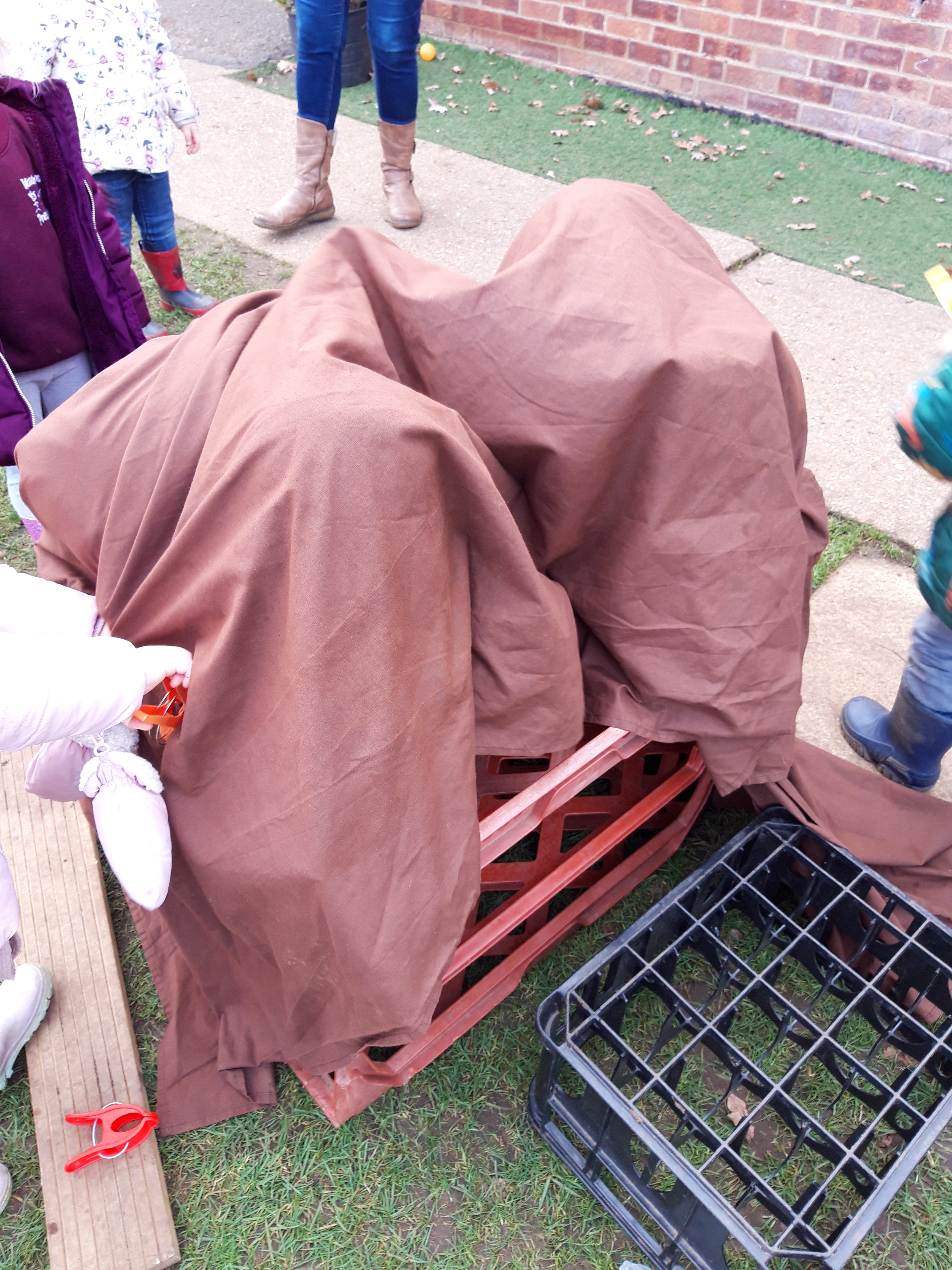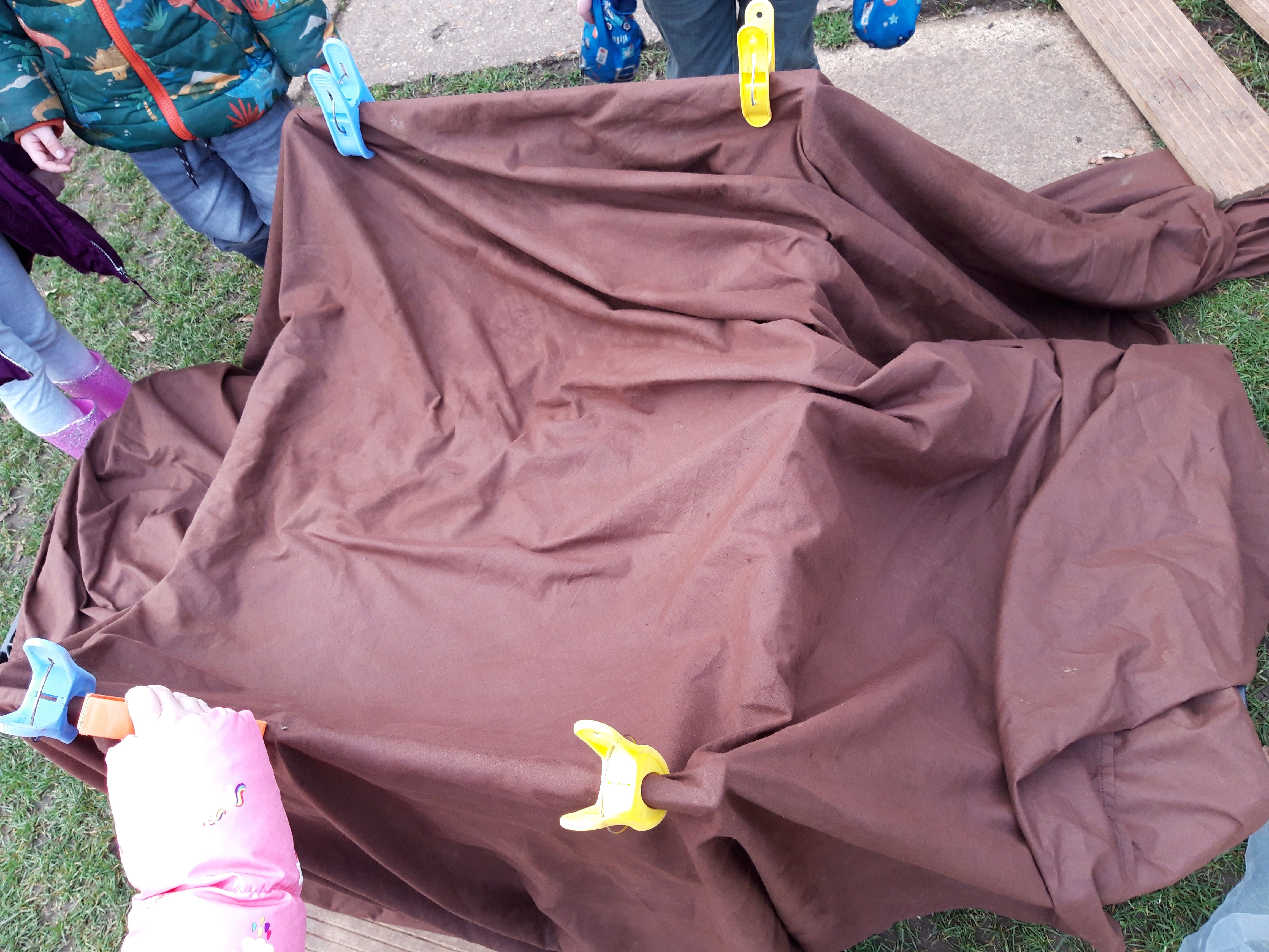 Camp site making and then den building. The children are a dab hand at making dens, using their ideas, working together and supporting each other to make their dens even better.
