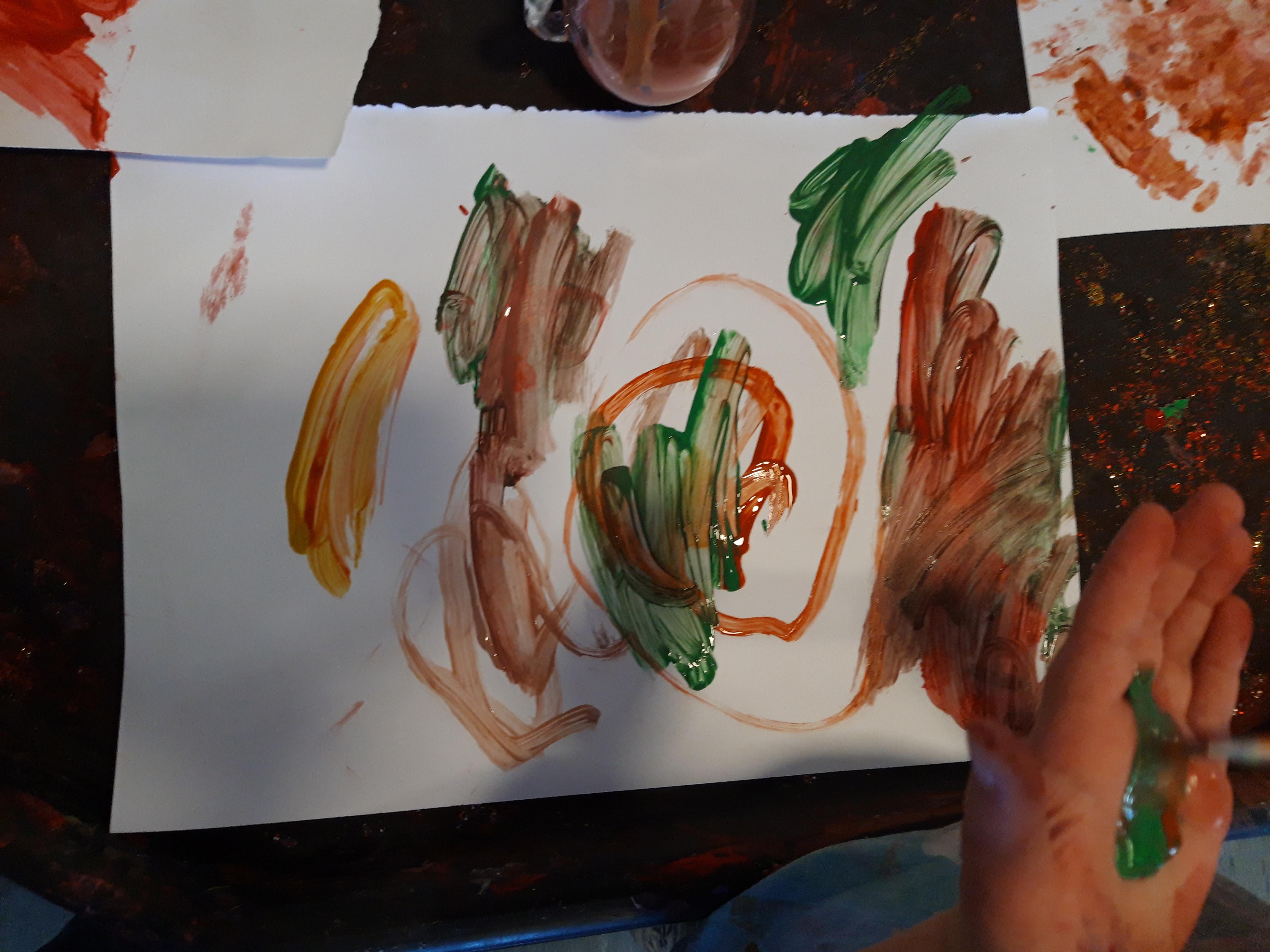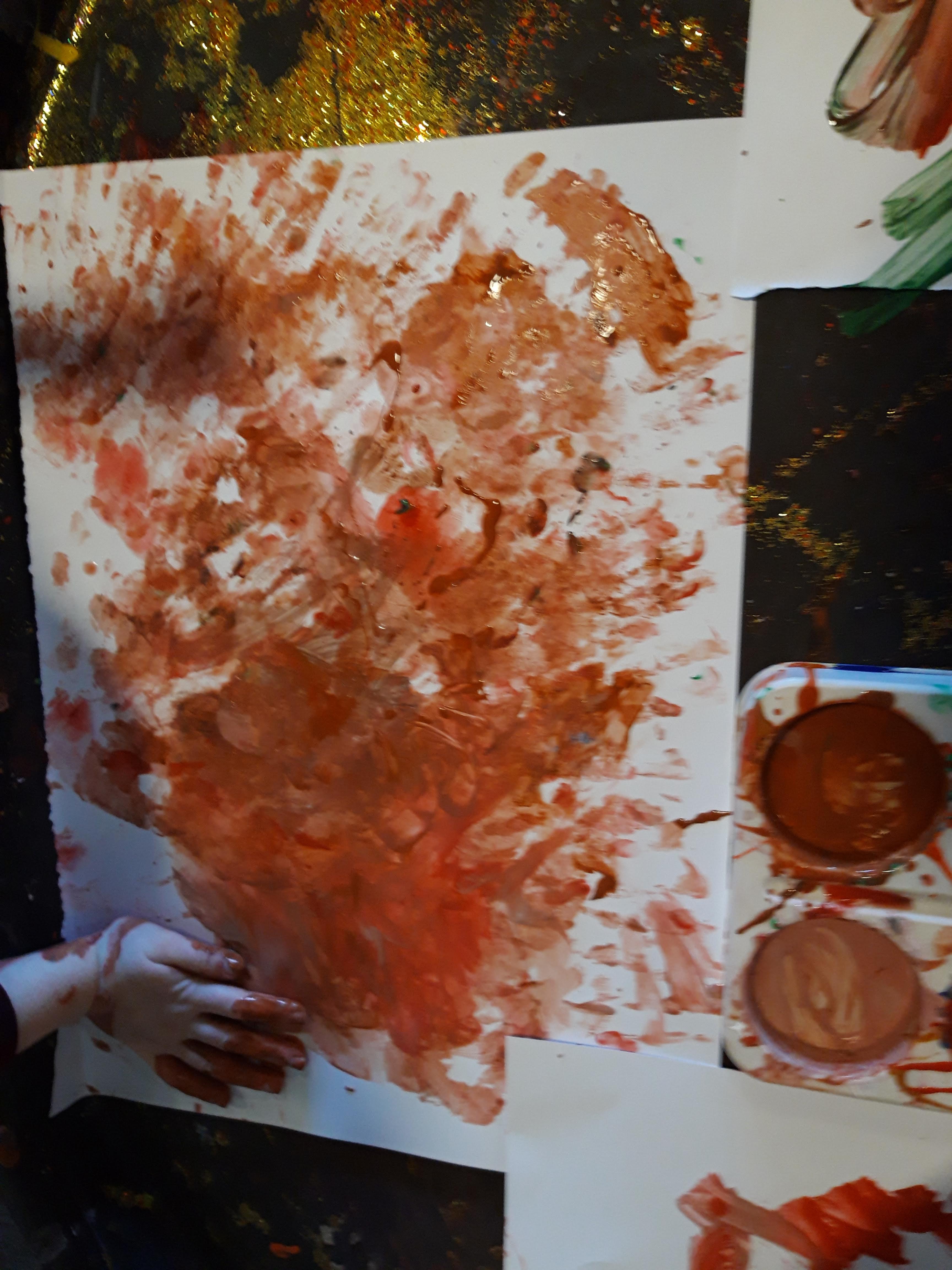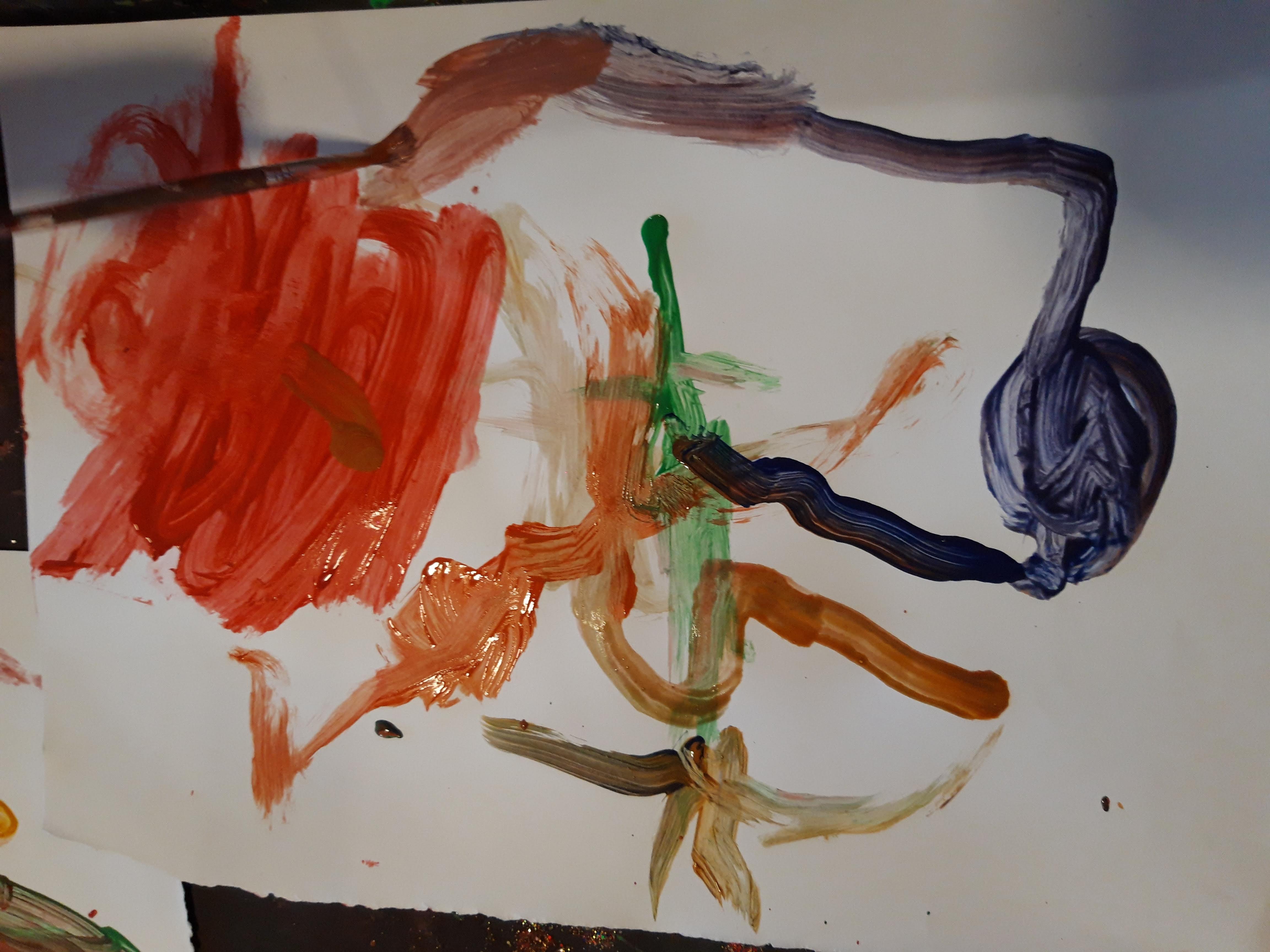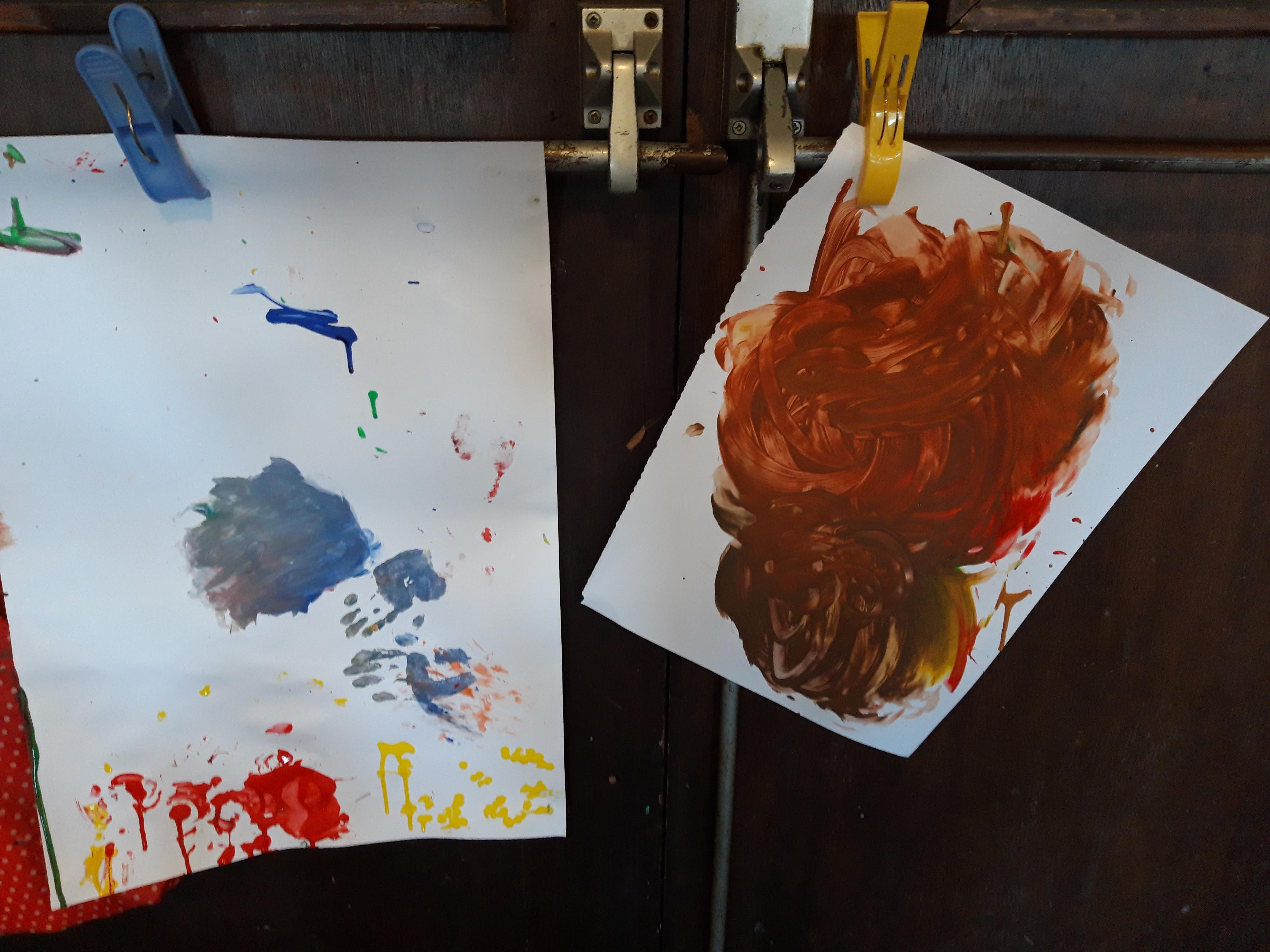 Painting, we have been encouraging the children to wash out their paint brush after using it in one paint. this way they get to learn about waiting and taking turns and that water washes out the paint.