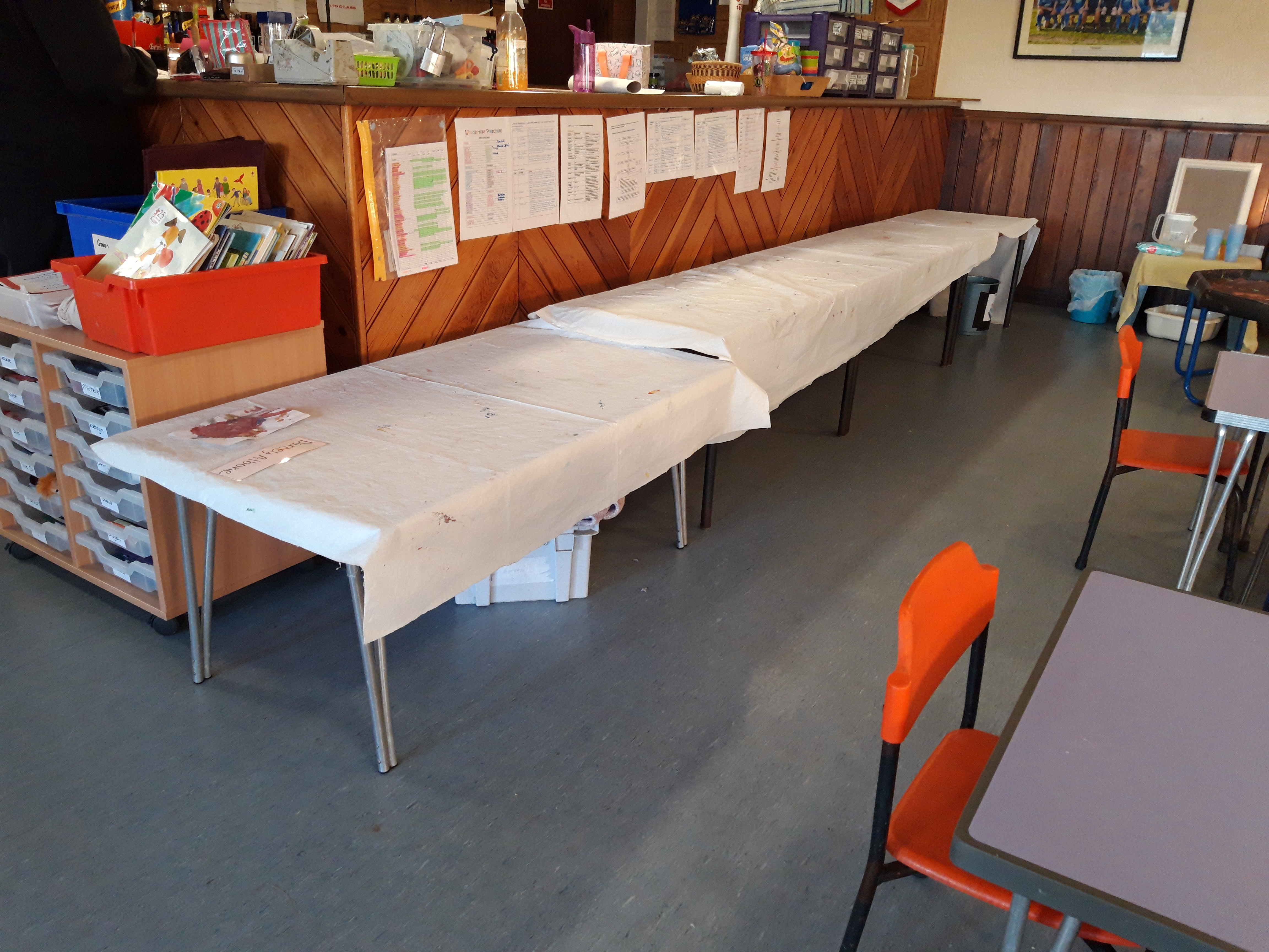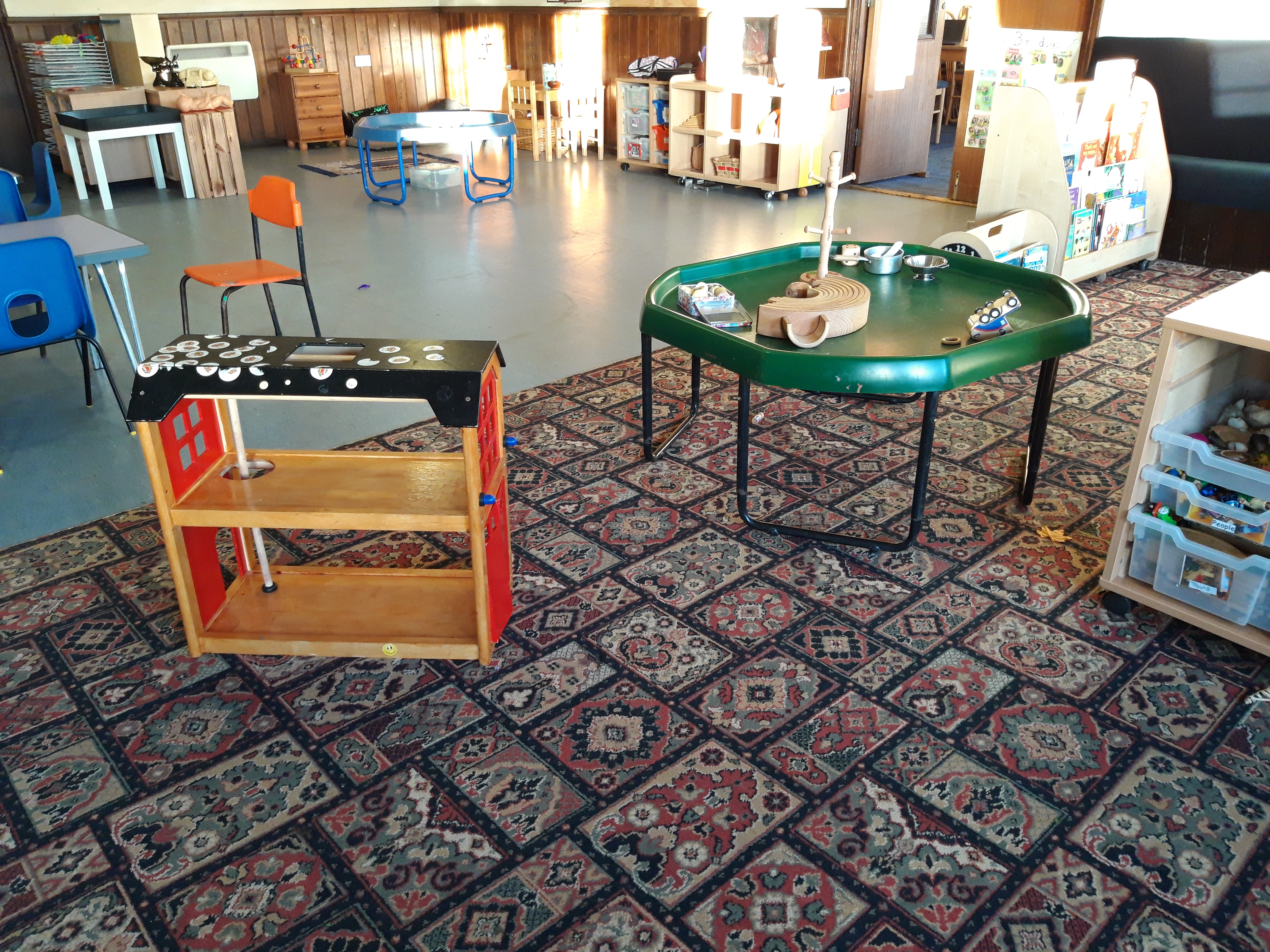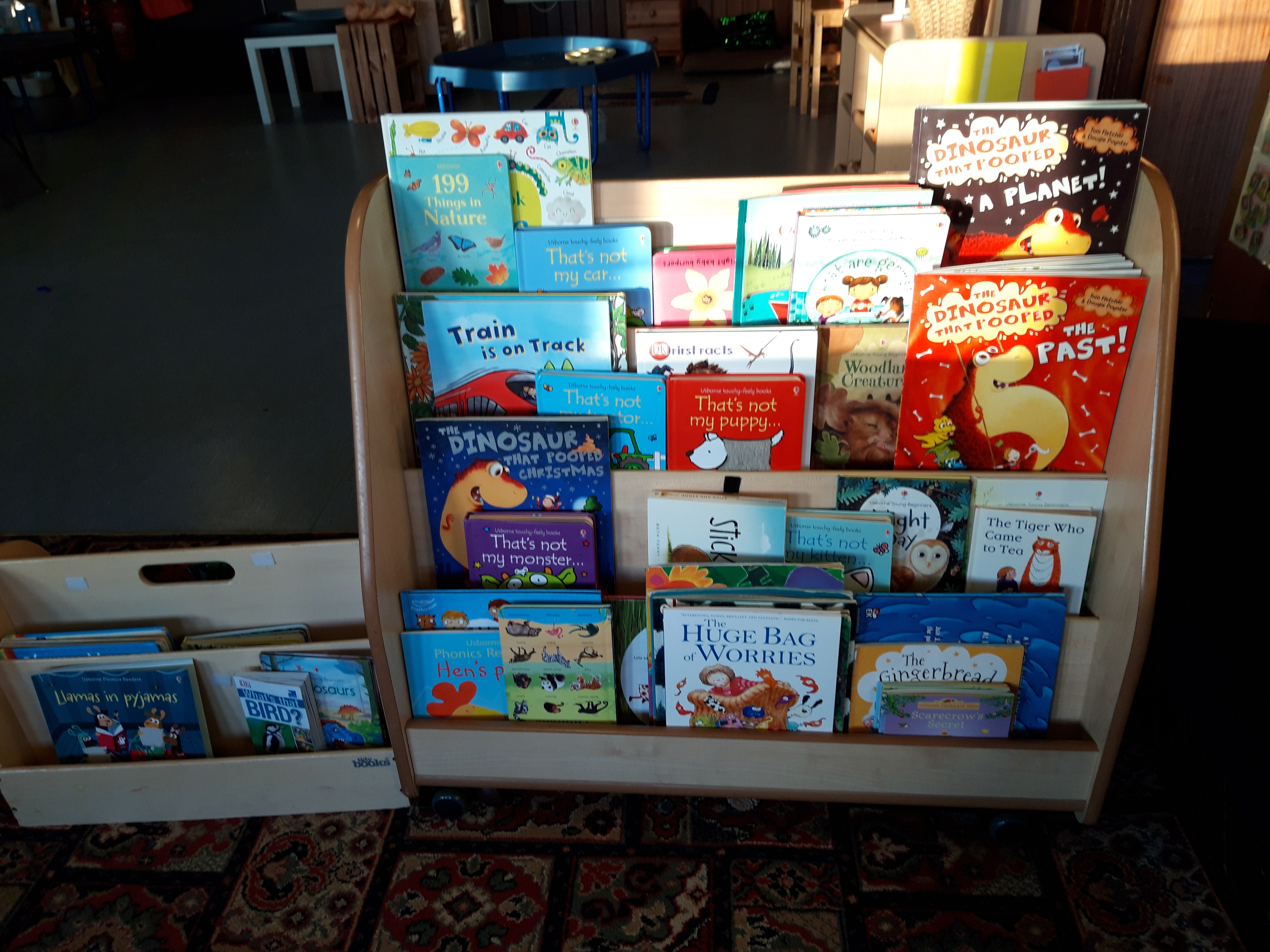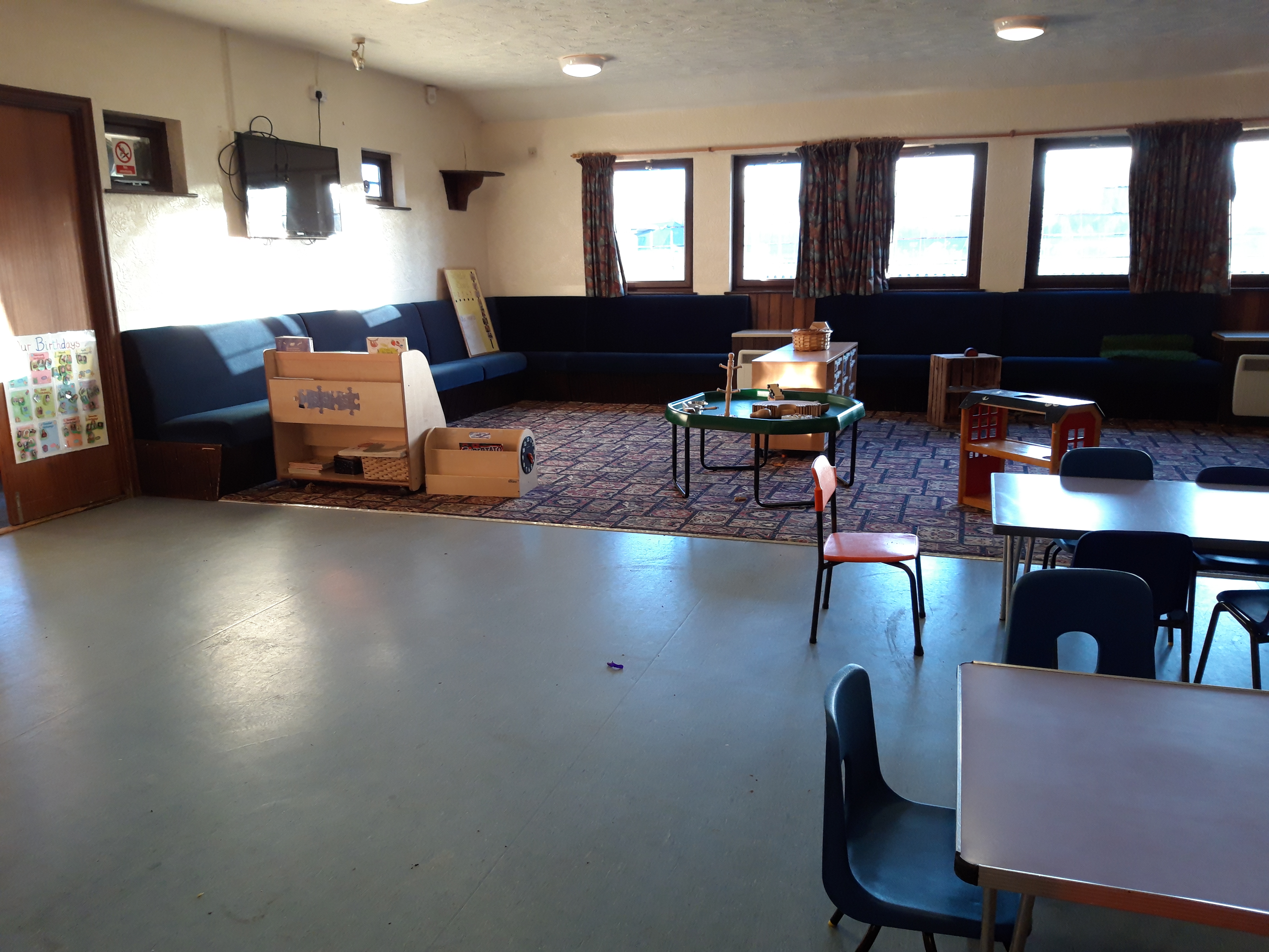 The room already set up for our children to come and play. We have the schedule board out ready so children can see what is going to happen through out the morning. When the activity takes place, it is taken off the board so the children can see how close snack, lunch or home time is. It really helps those that are a little anxious about routine. The little tables covered in white are for the children to put their names on so they can put any products they make- pictures, models etc; on to take home. This helps reinforce how their name looks and encourages them to recognise their name.