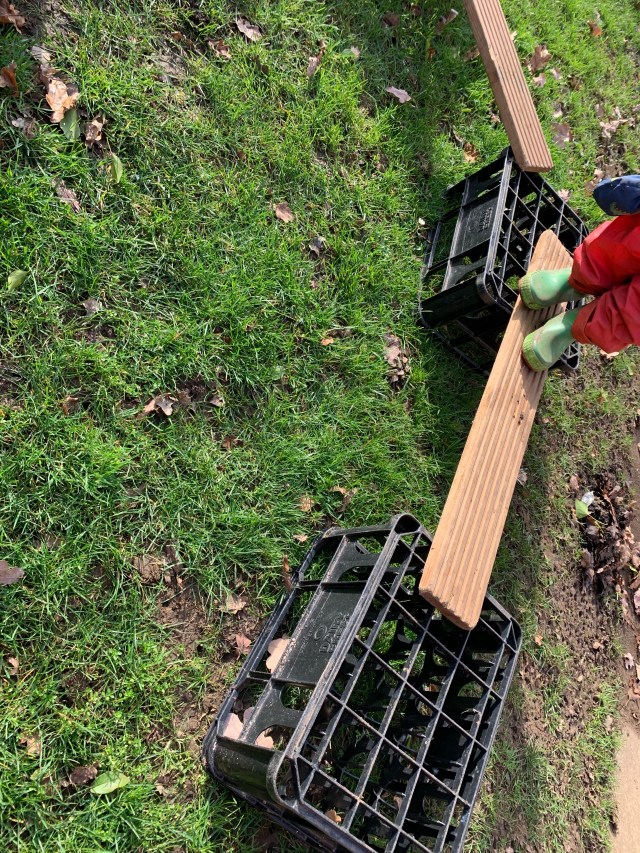 We made an obstacle course trying to avoid the crocodiles in the water, and doing lots of balancing, working together to make the planks balance, discussing ideas and putting them into practice.