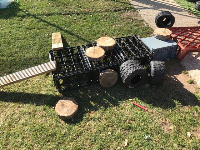 One little one, having built a camp fire last week went on to do a fire engine this week. He was supported by 5 friends who discussed about how and where everything went. They made sure there was space at the front for 2 to ‘drive the engine ‘ using a wood cookie as the steering wheel. Planks of wood became hoses and the milk crates were stacked to become a ladder which they took in turns to climb, use the ‘hose’ to put out the fire 🔥 and jump down from the ladder. They encouraged each other especially when one was a little unsure of climbing 3 crates by reducing it to 2 and helping him climb up. Once he mastered it, another was added and he jumped from it just like his friends.