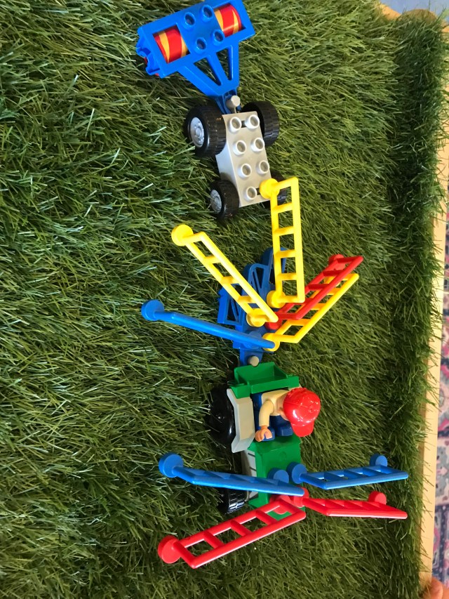 A magnificent build by one little one who chatted about his design as he built it. He worked how to balance the bricks by trial and error. This was the beginnings of a crane built on Monday.