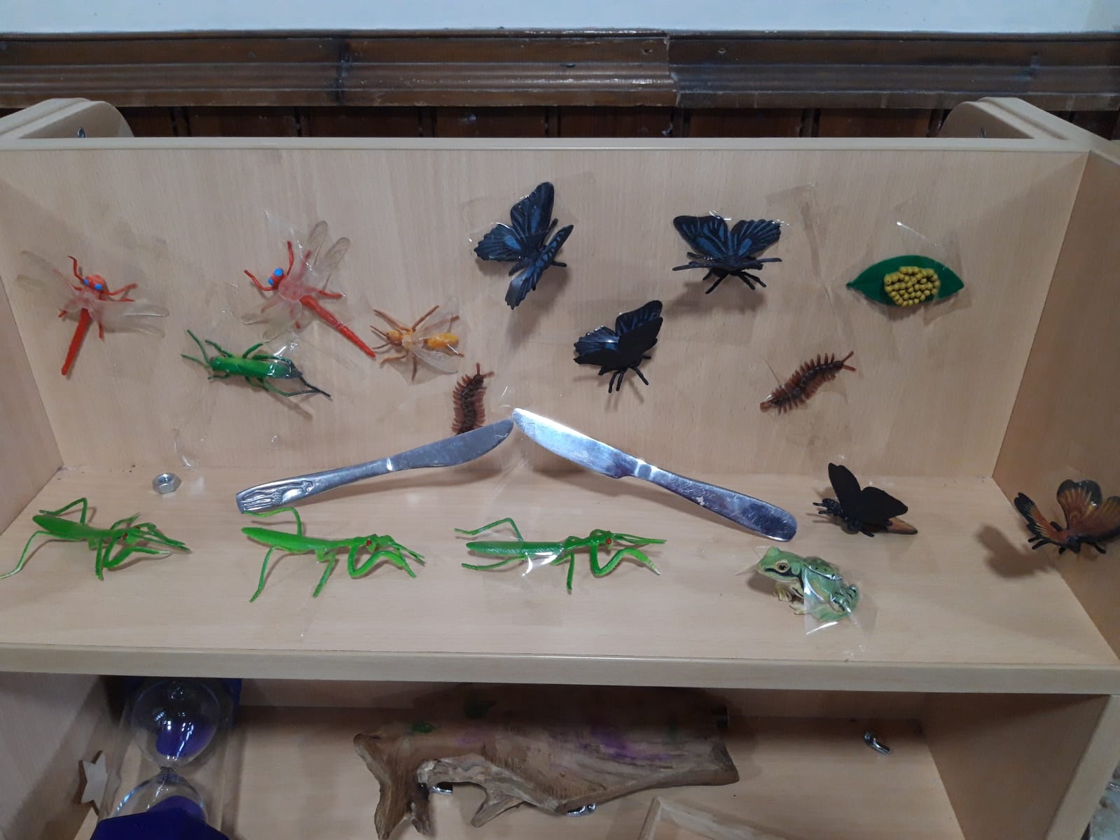 One little 4 year old spent lots of time sorting through the bugs, categorising them and then sticking them to the unit with sellotape. He added the knives in at the very end.