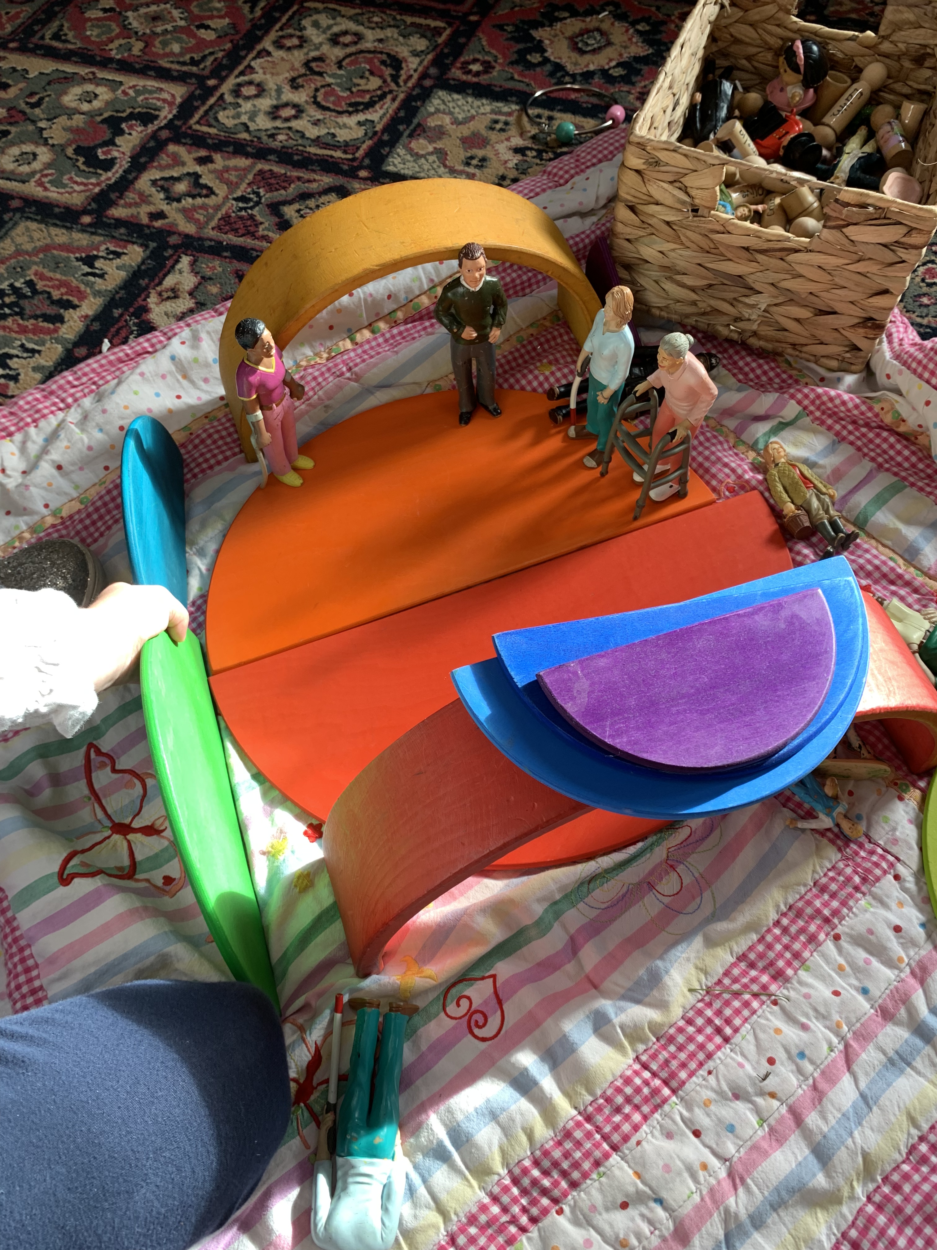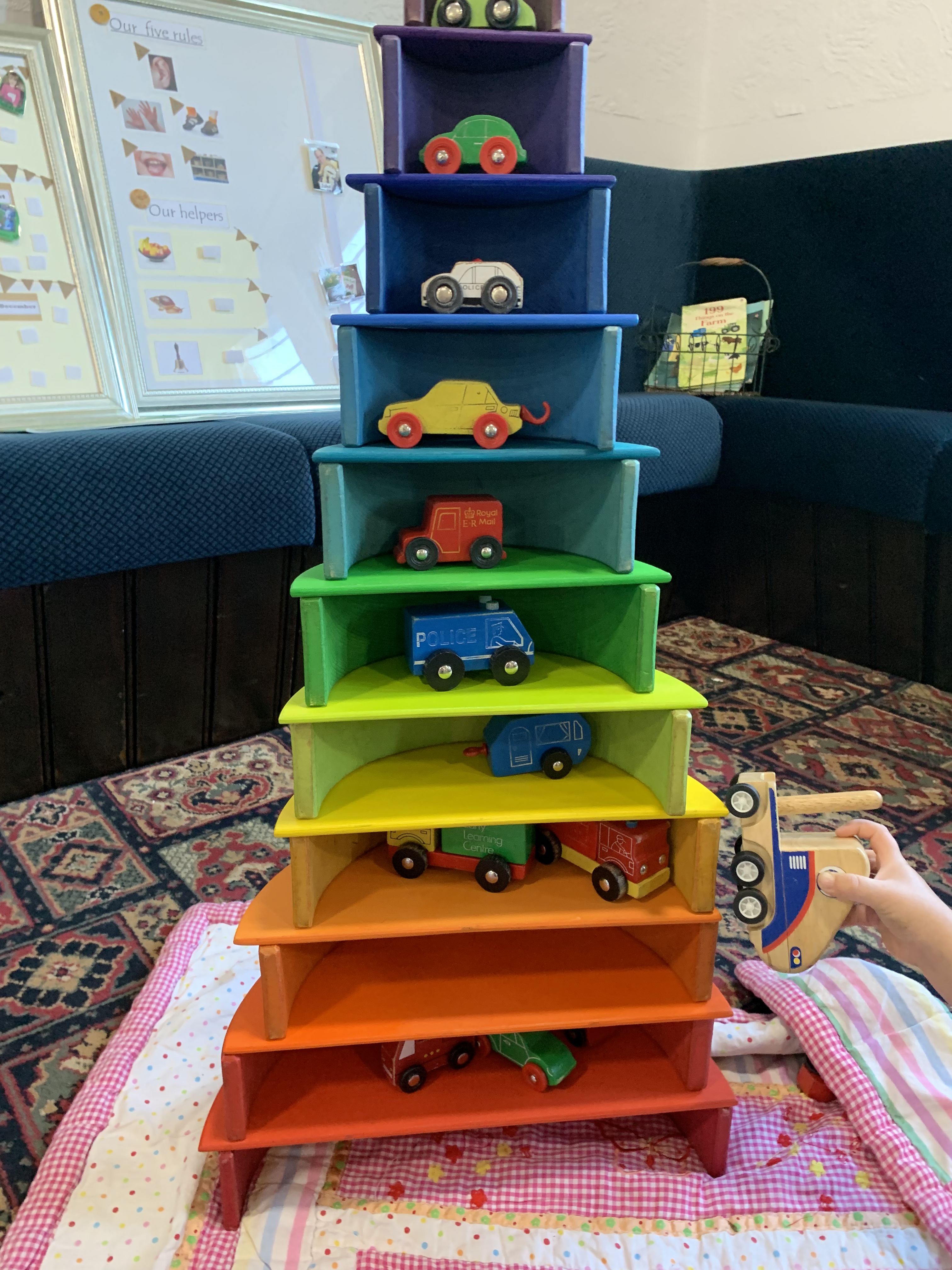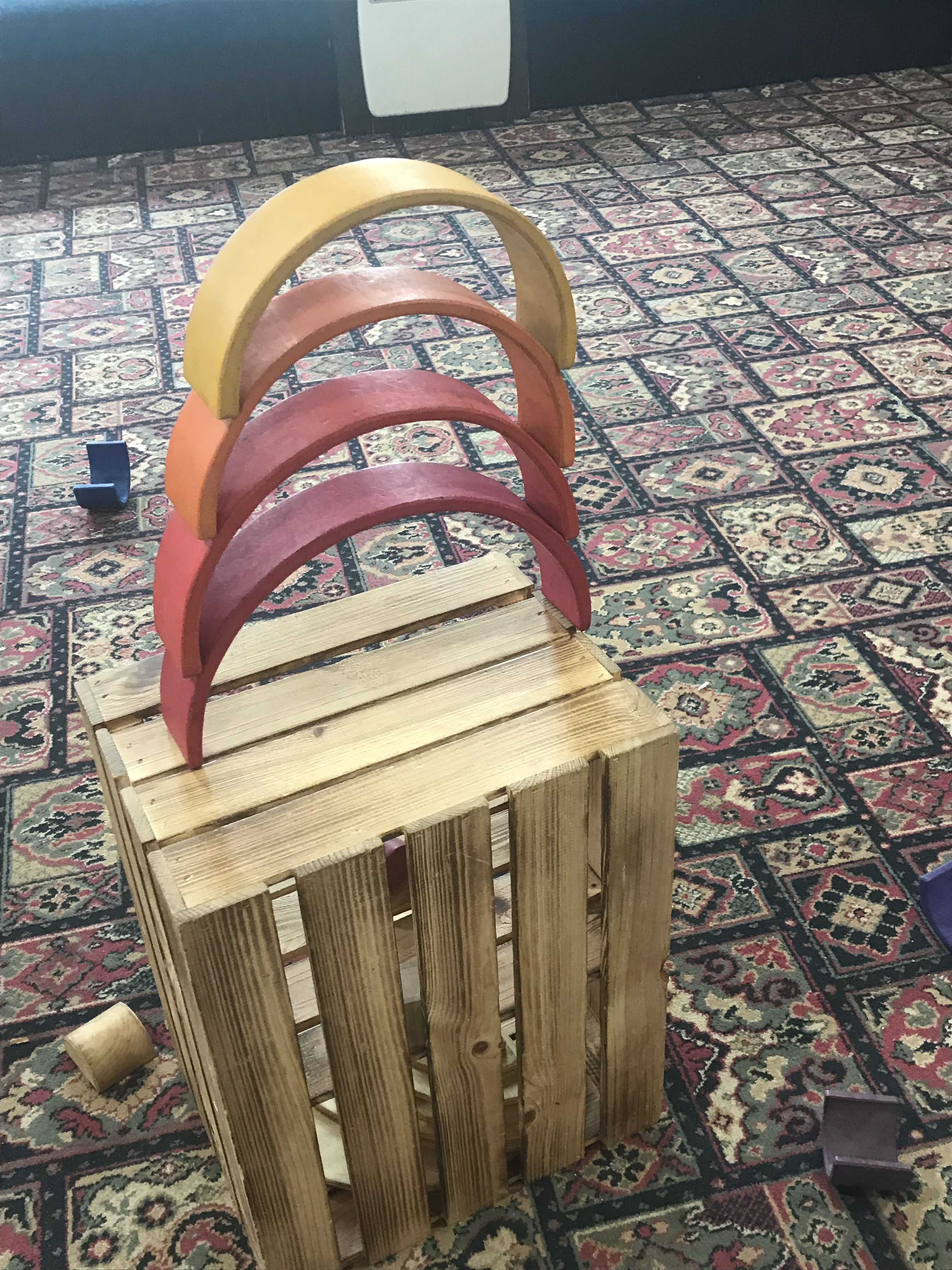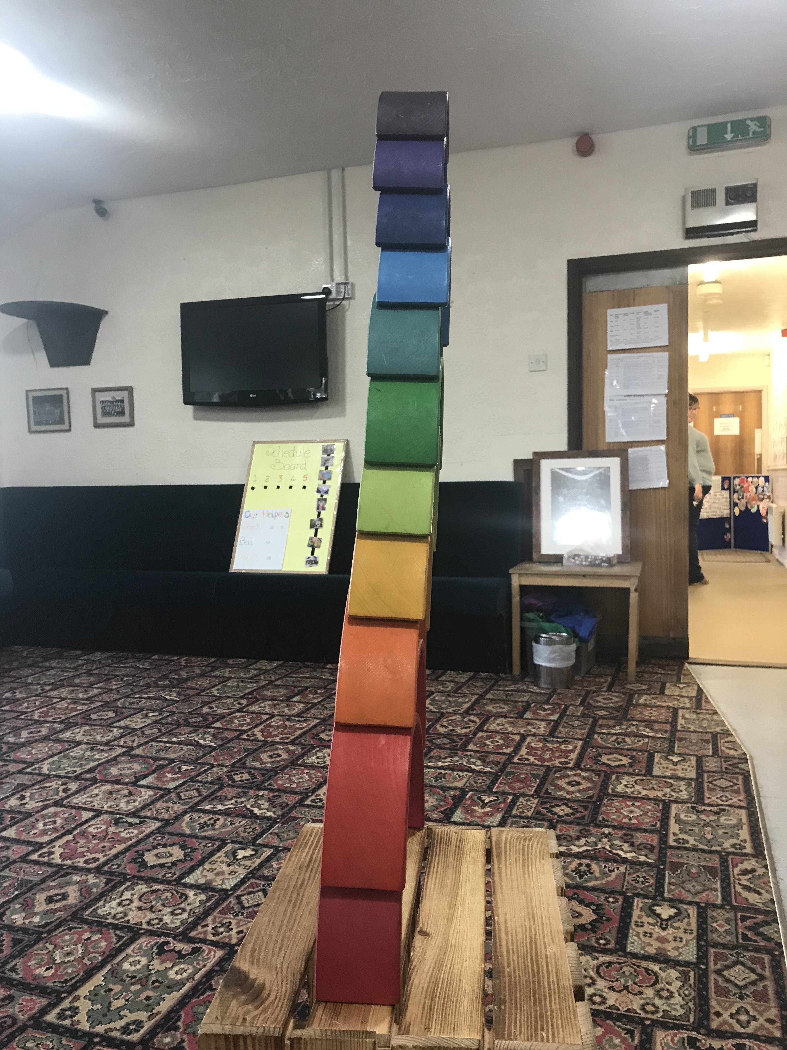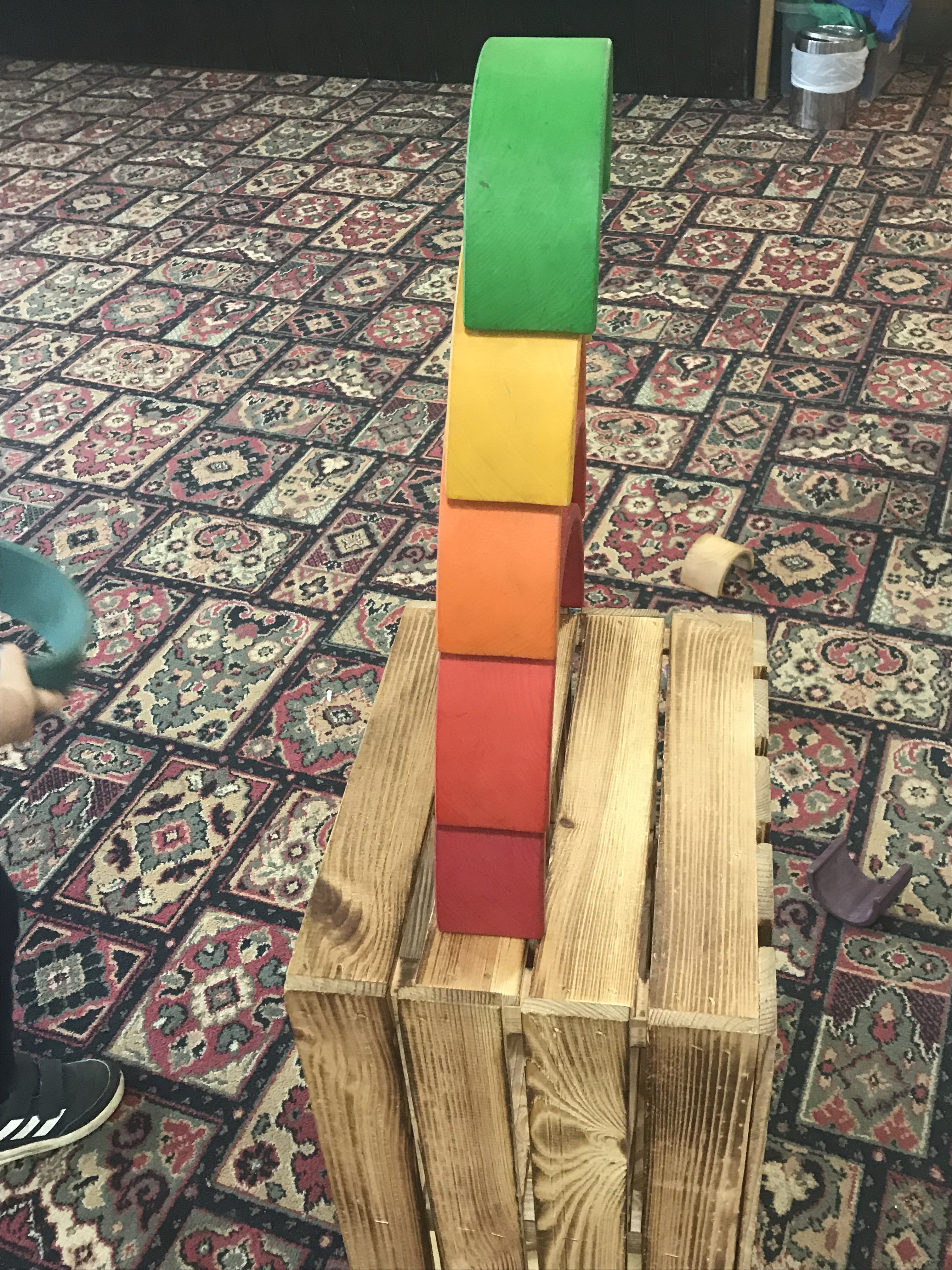 How tall can we make our rainbow 🌈 go? The children worked together to balance out the sections as they placed the pieces on top of each other.