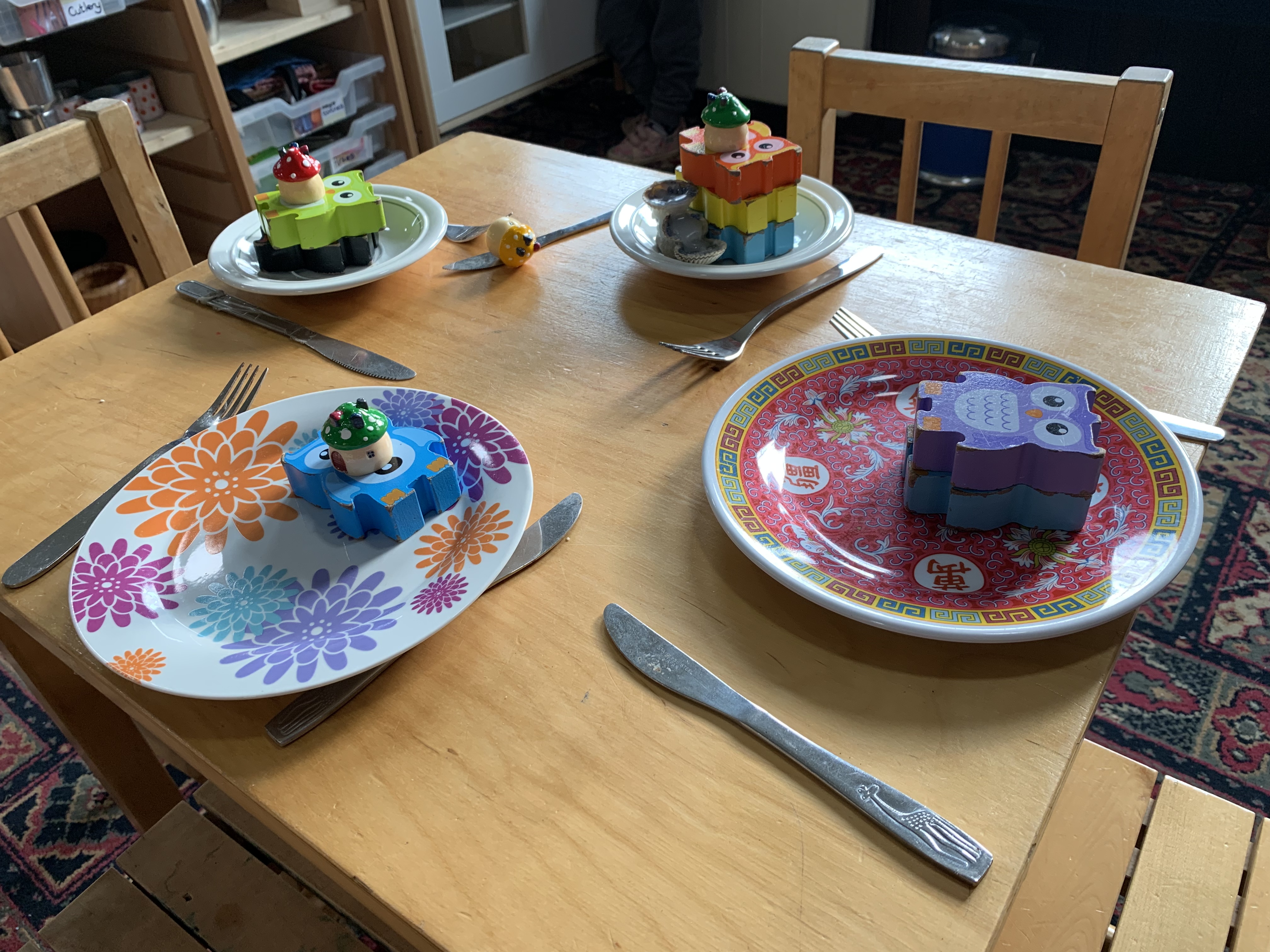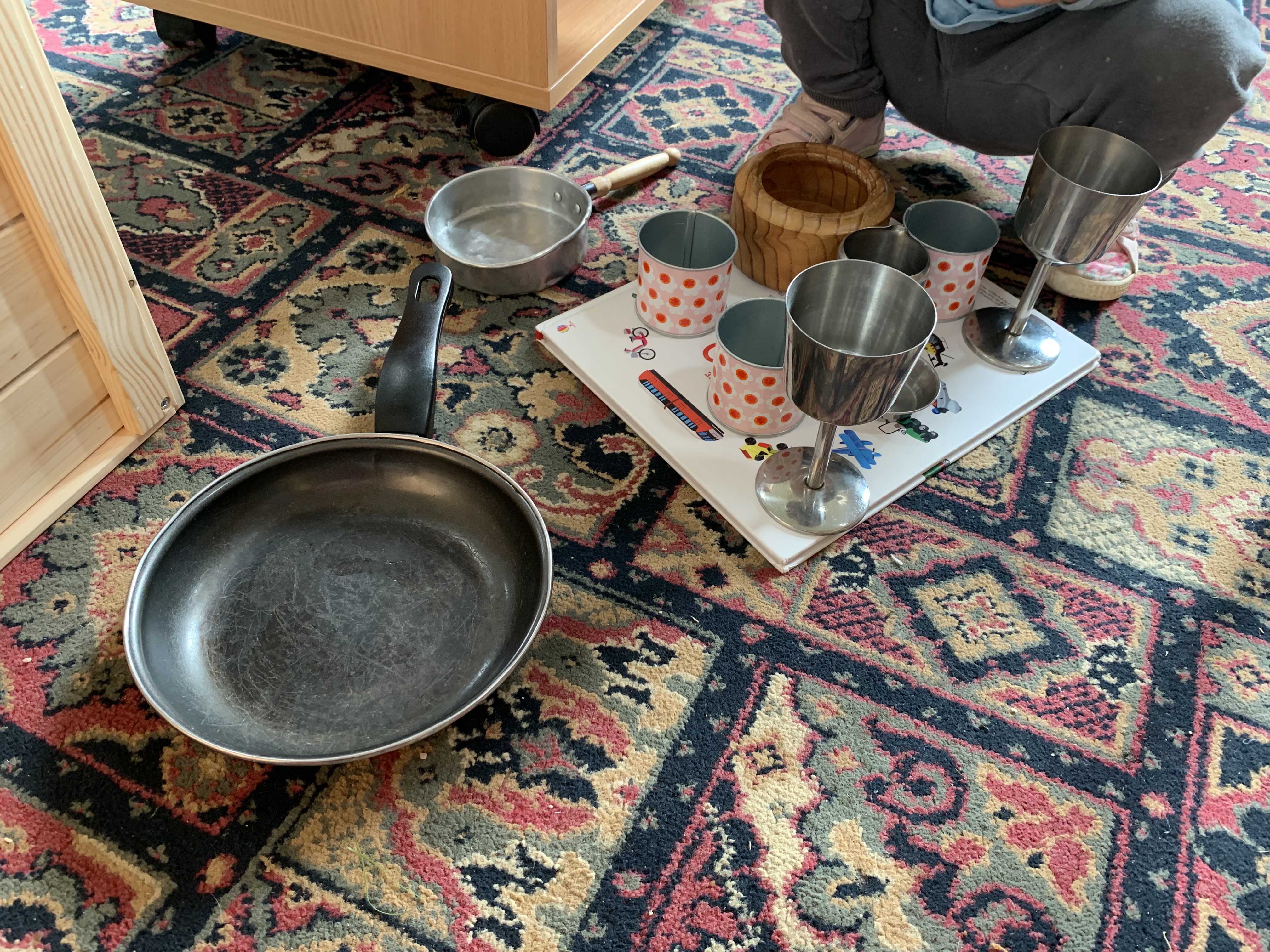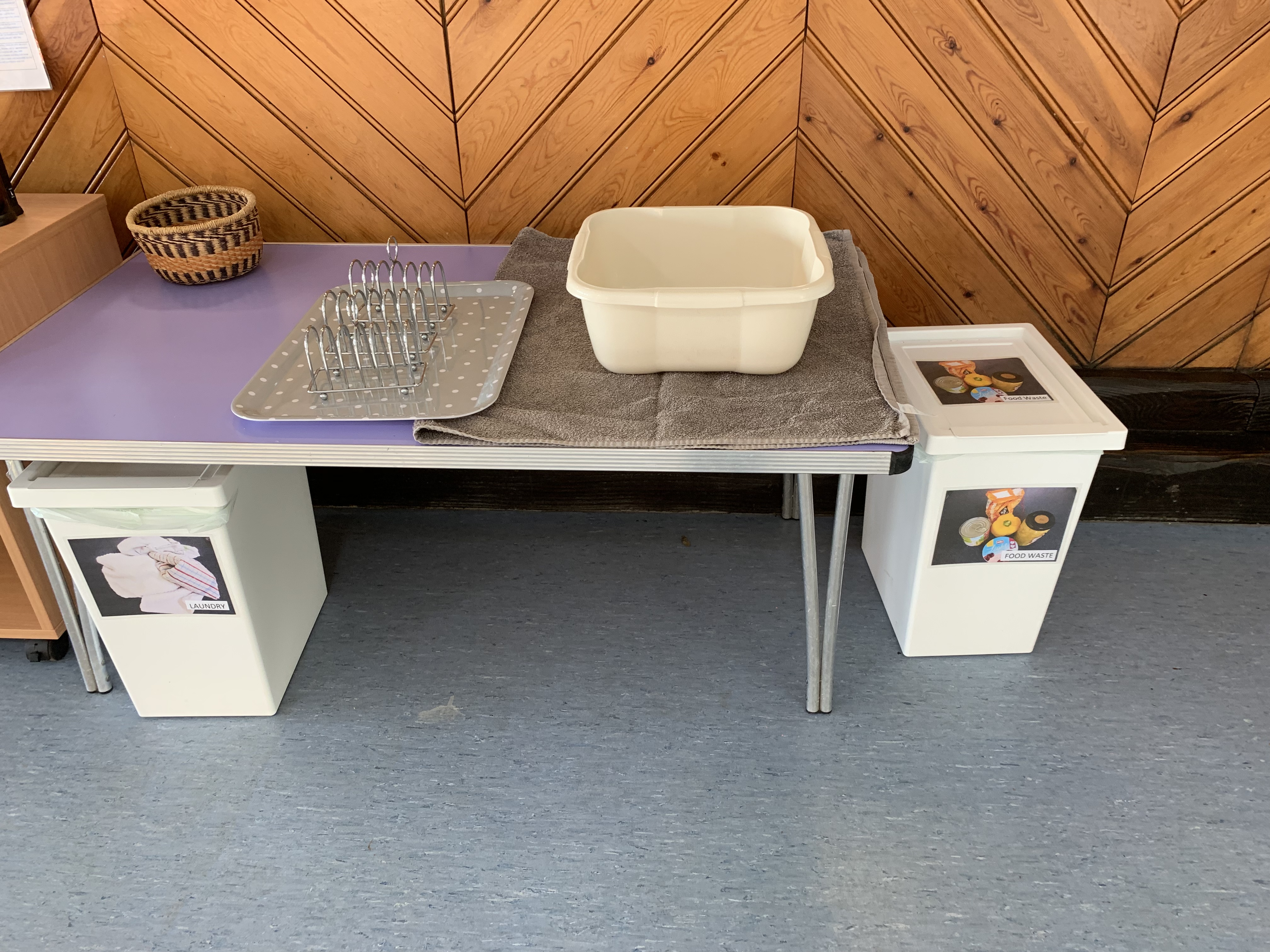 This was no longer a book, but a tray. Sorting out the kitchen bits ready to start done ‘cooking’. And when she had finished I’m proud to say she put everything back (reset) where she got it from ready for the next person to use.