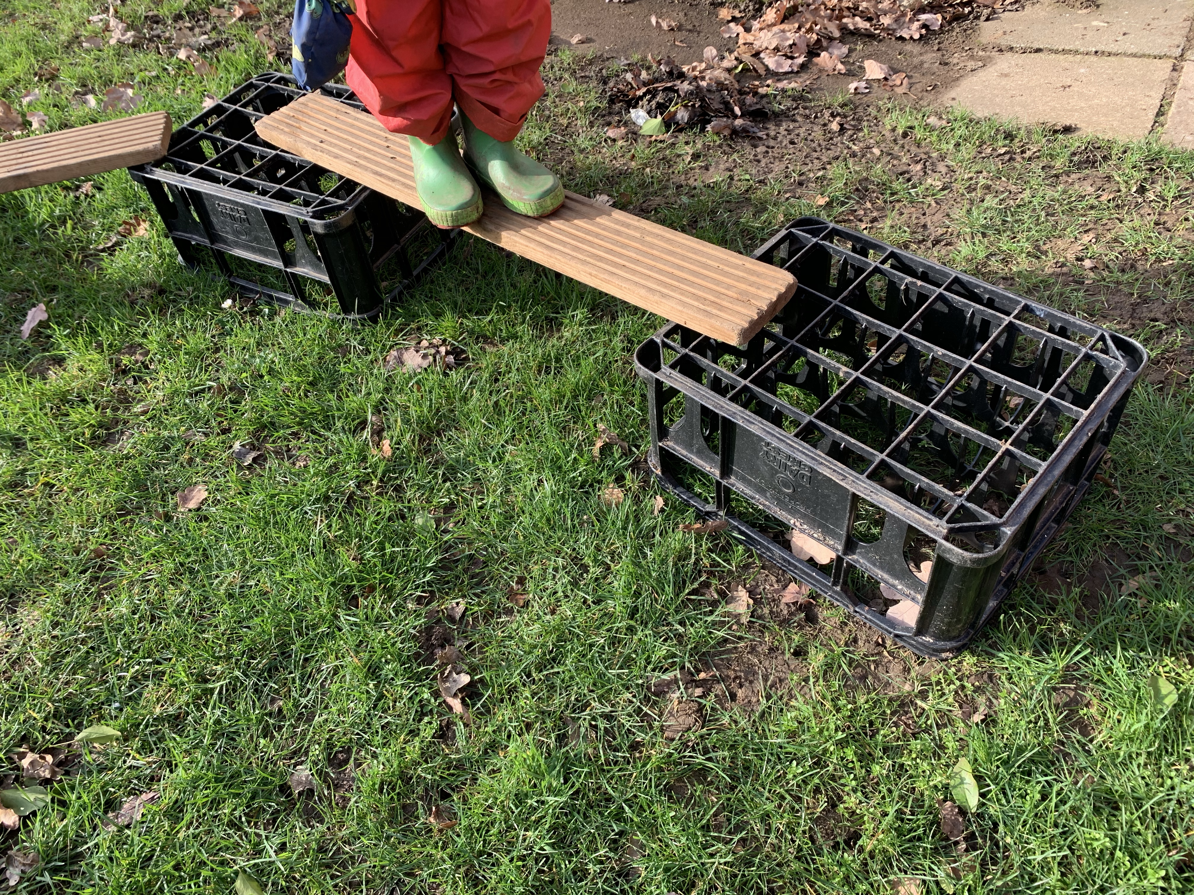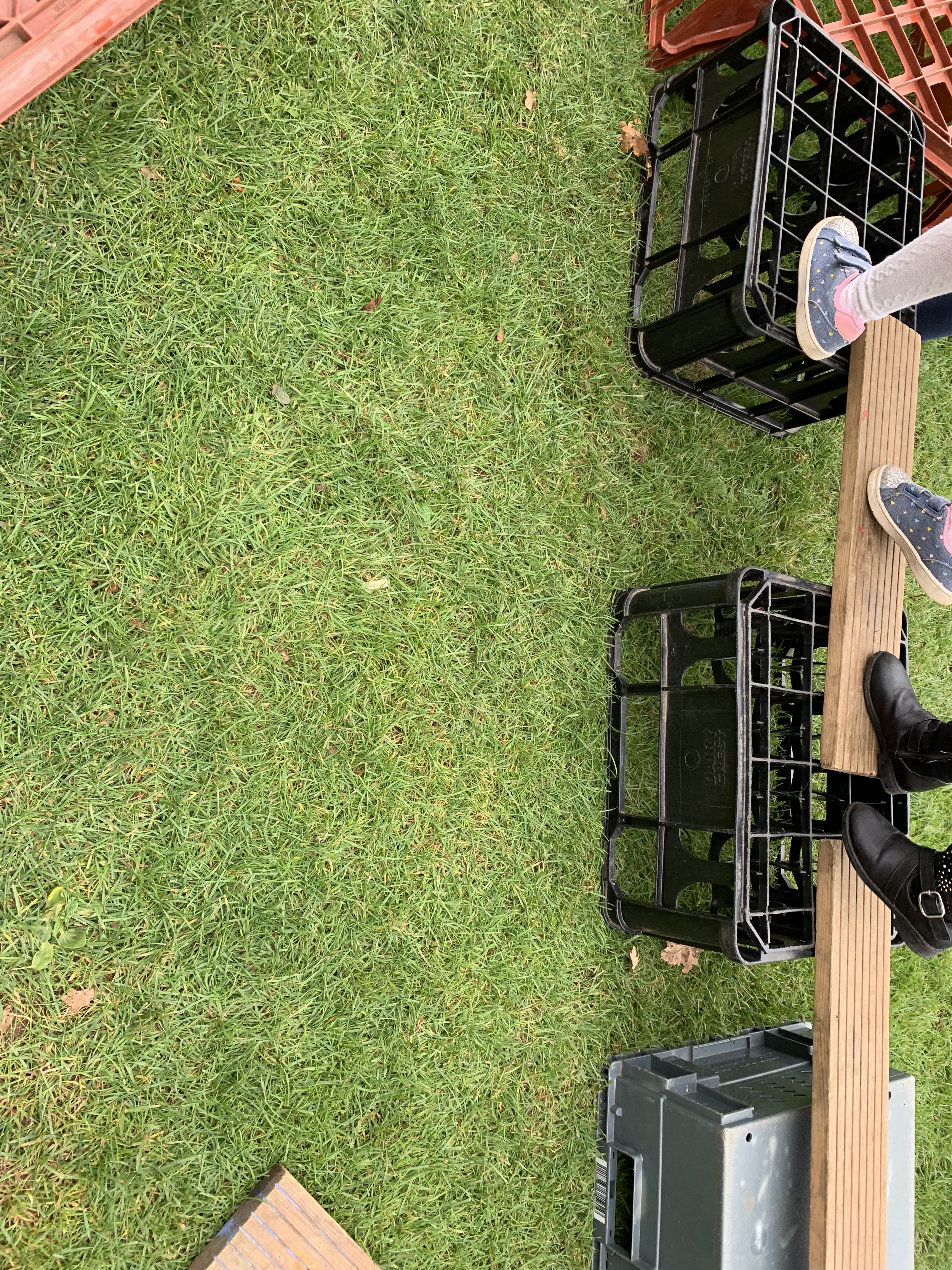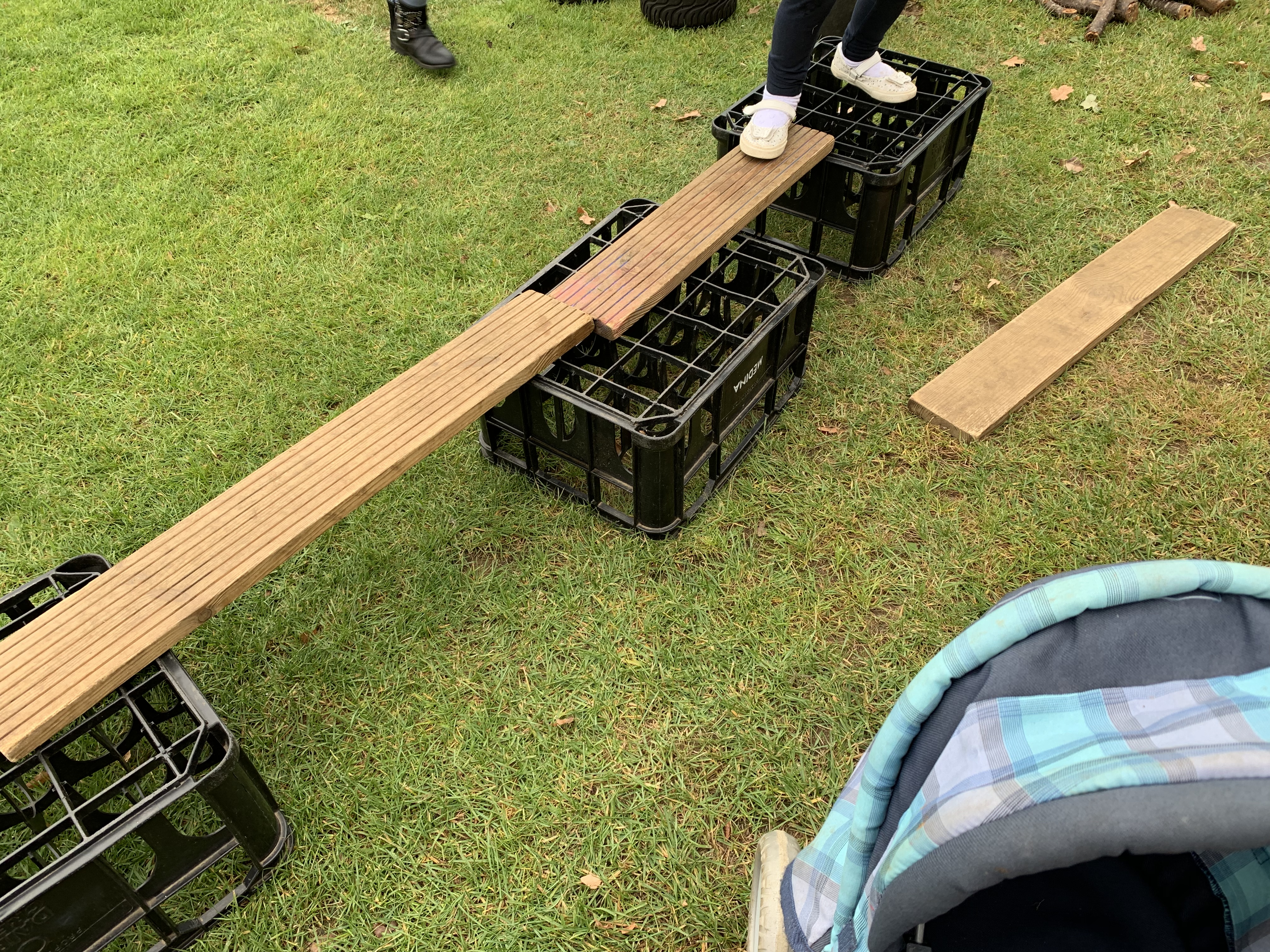 We made an obstacle course trying to avoid the crocodiles in the water, and doing lots of balancing, working together to make the planks balance, discussing ideas and putting them into practice.