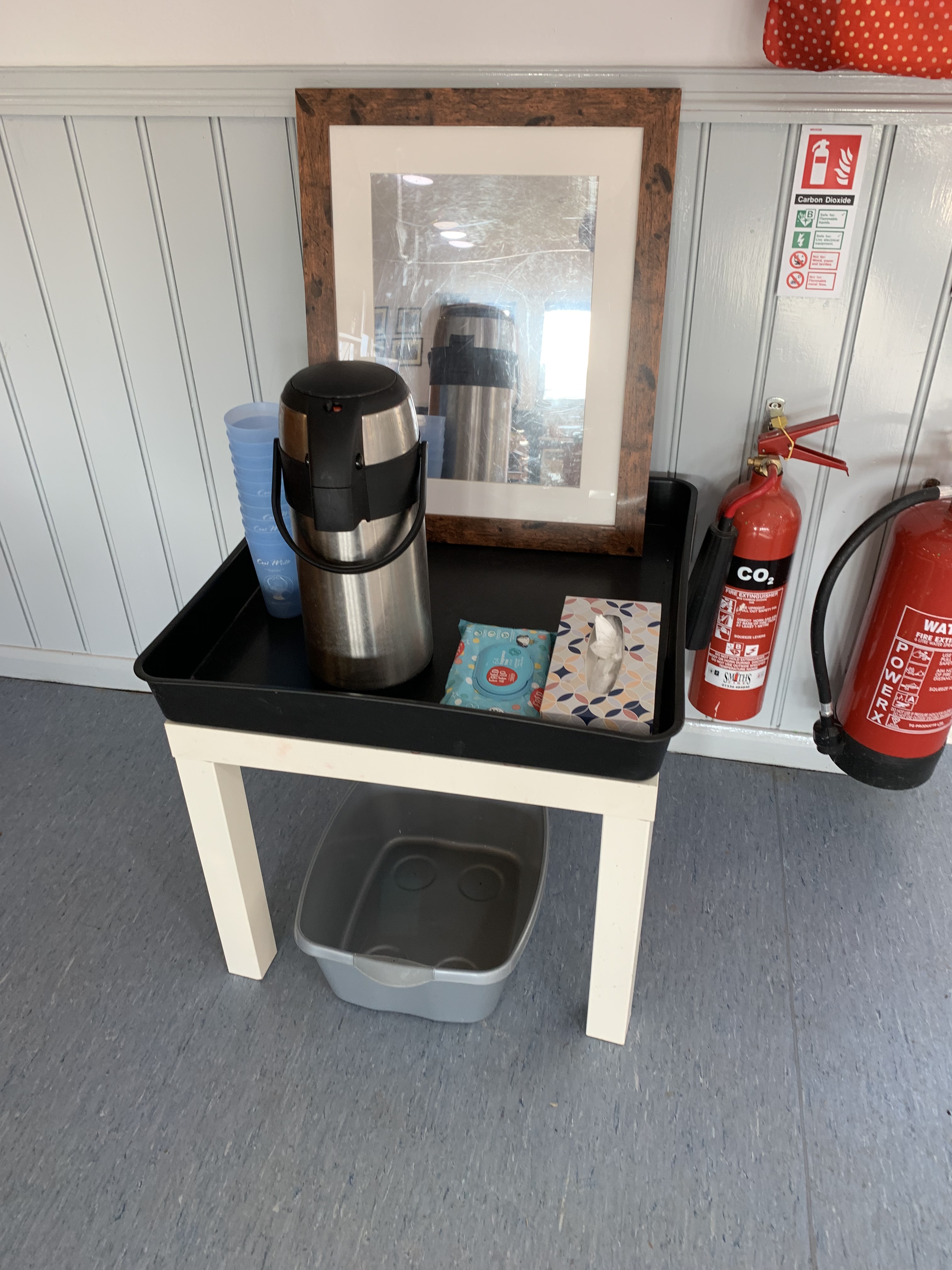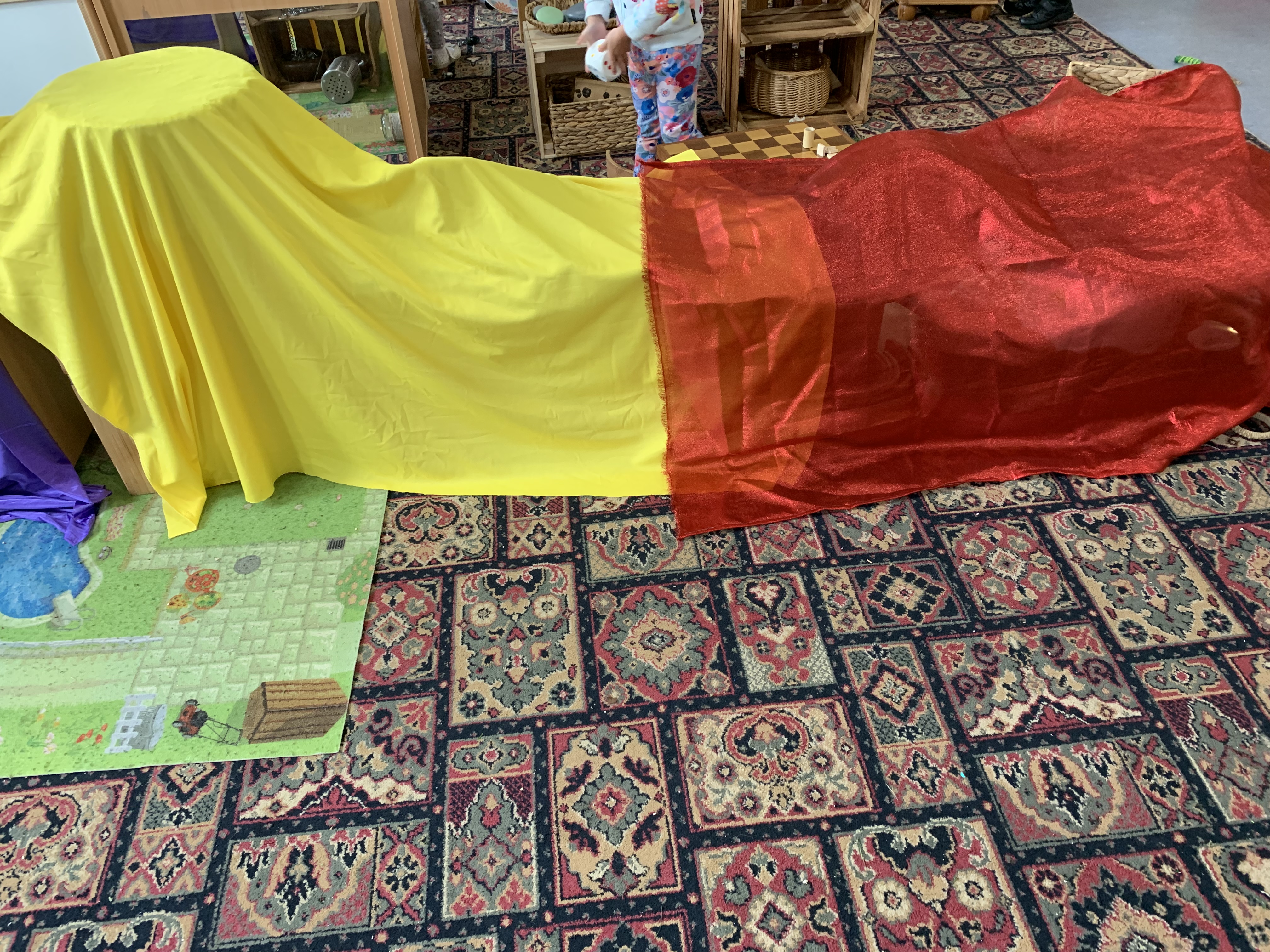 The room already set up for our children to come and play. We have the schedule board out ready so children can see what is going to happen through out the morning. When the activity takes place, it is taken off the board so the children can see how close snack, lunch or home time is. It really helps those that are a little anxious about routine. The little tables covered in white are for the children to put their names on so they can put any products they make- pictures, models etc; on to take home. This helps reinforce how their name looks and encourages them to recognise their name.