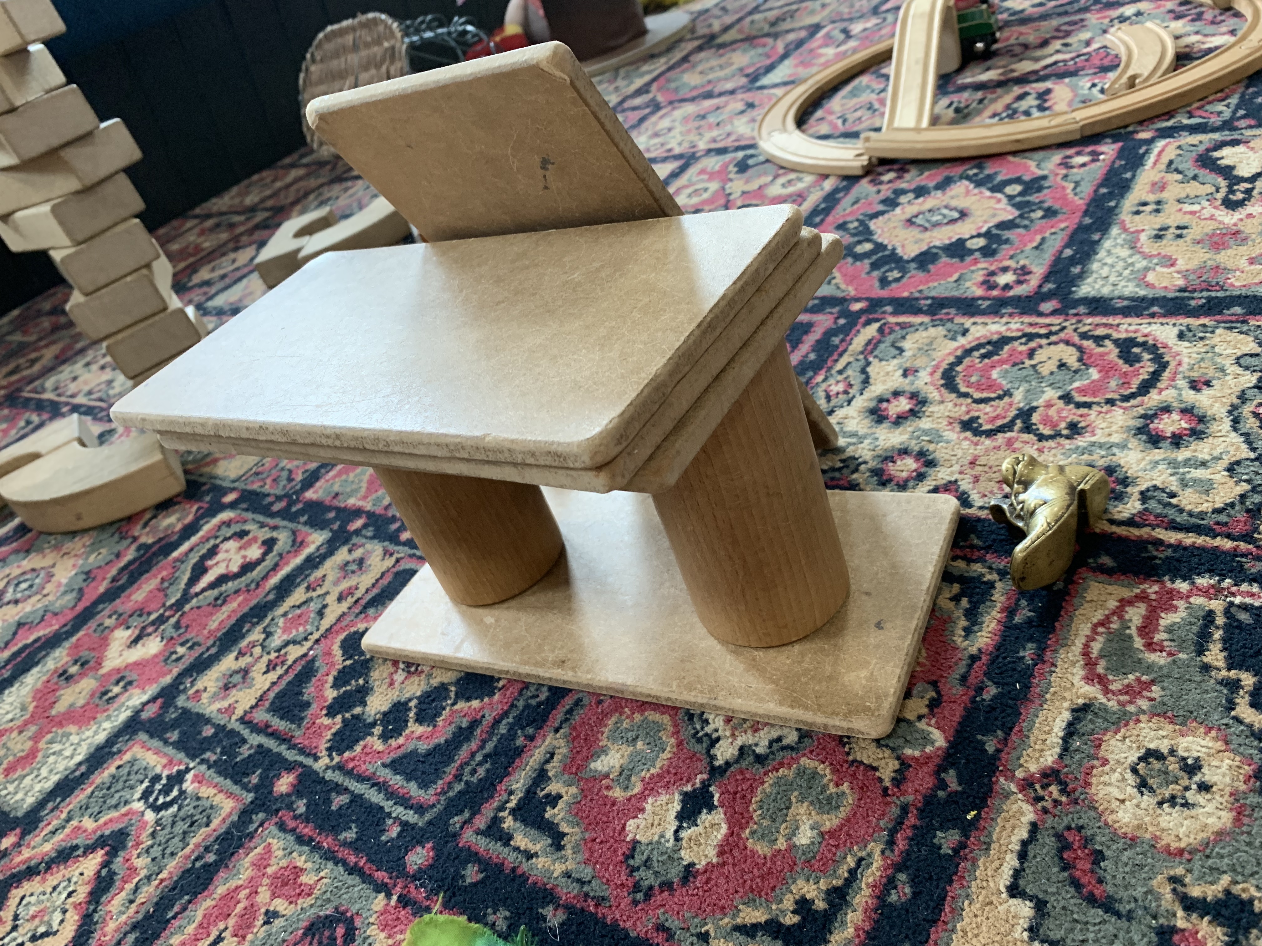 We added wooden chess pieces to the display and the children lined them up and added them to their buildings.