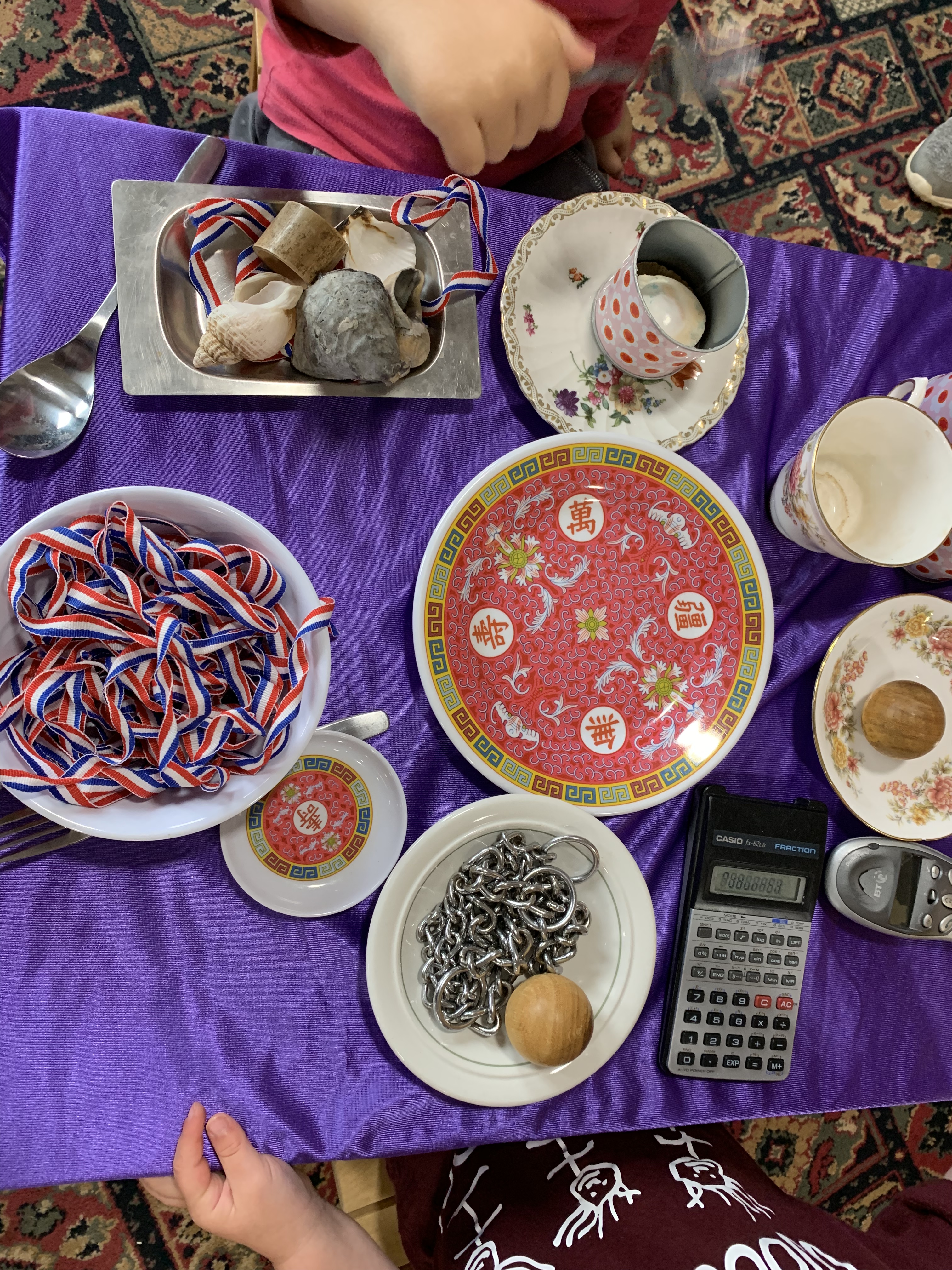 The Children sorted through the heavy weights and the buttons, doing lots of matching games.