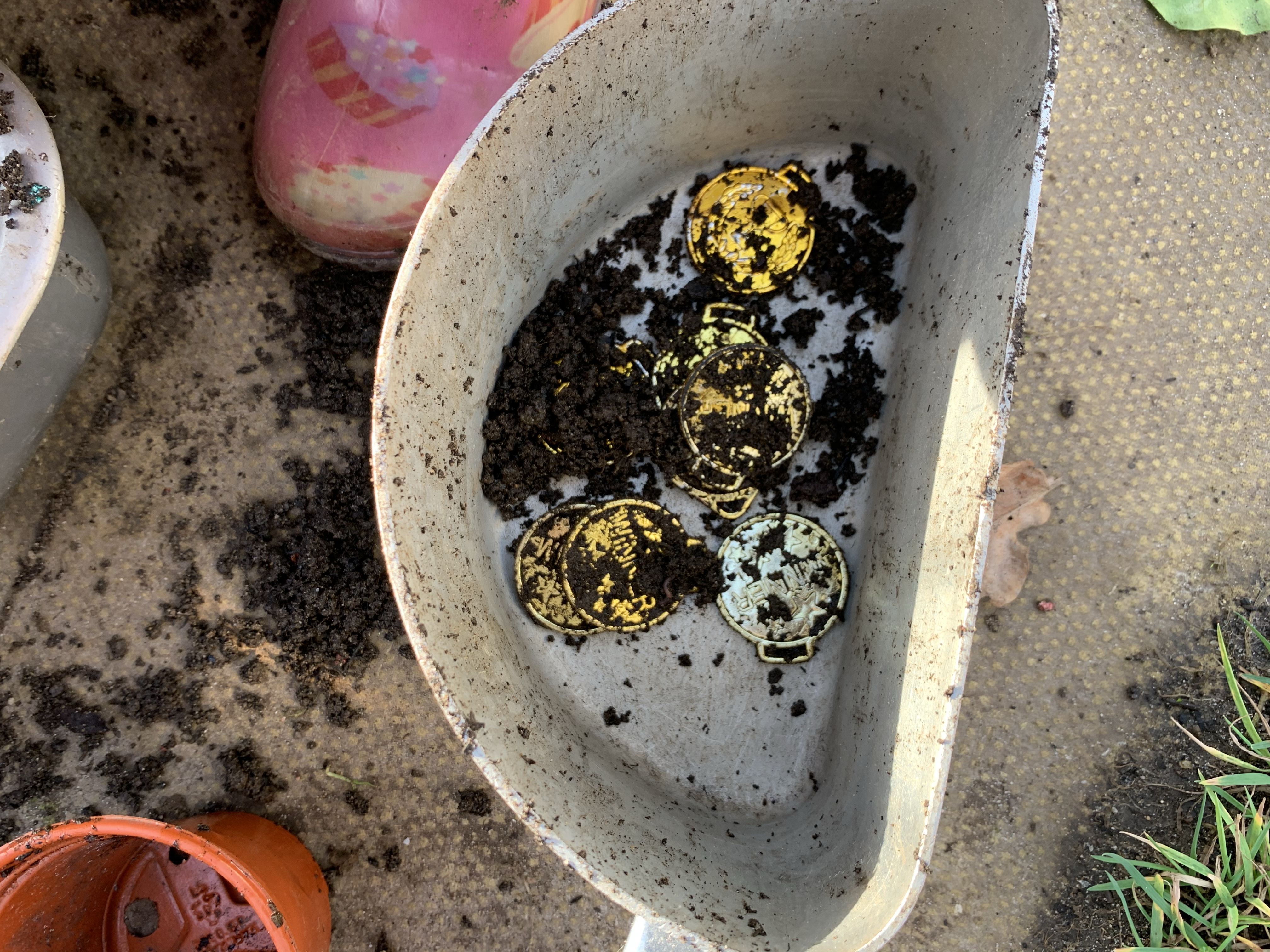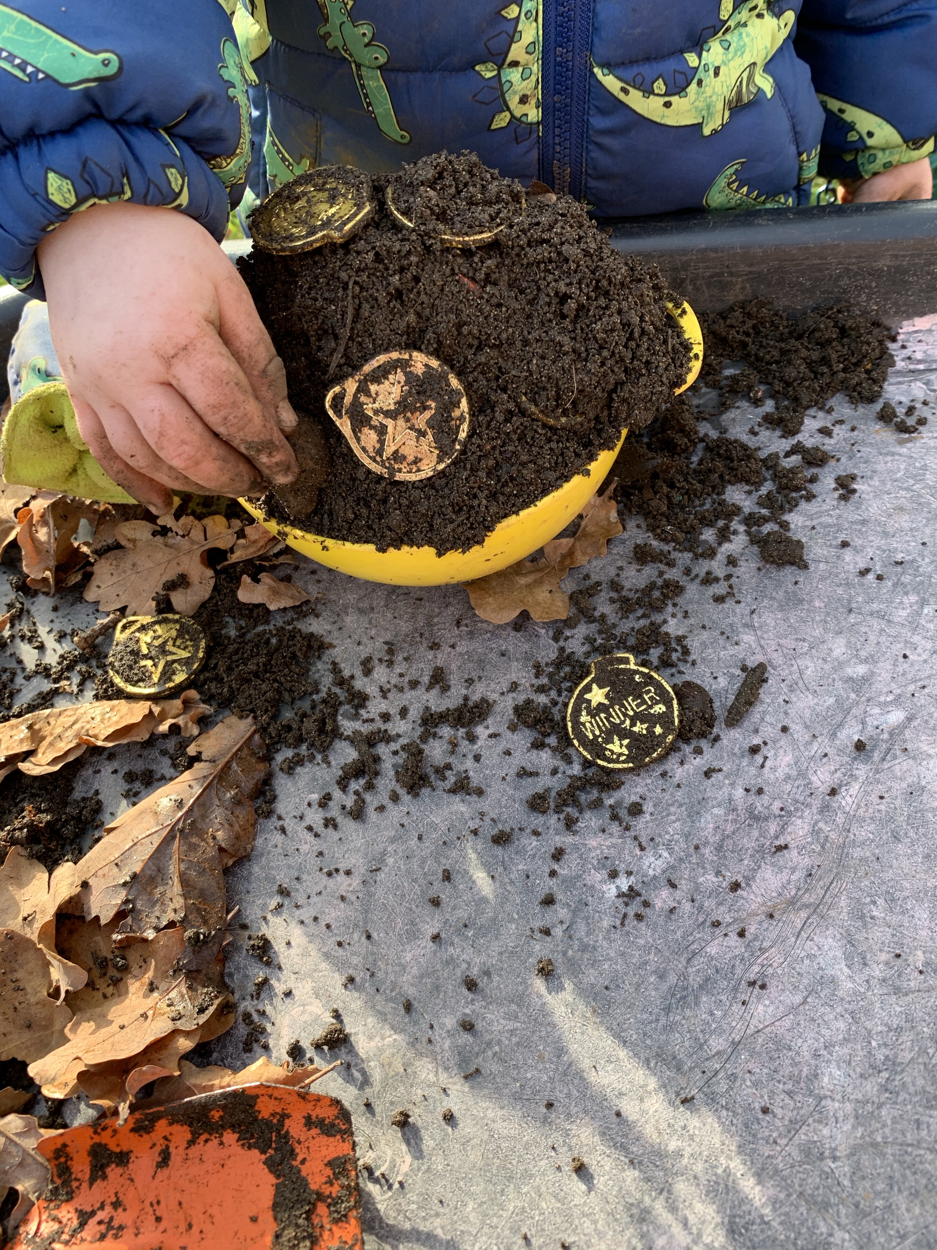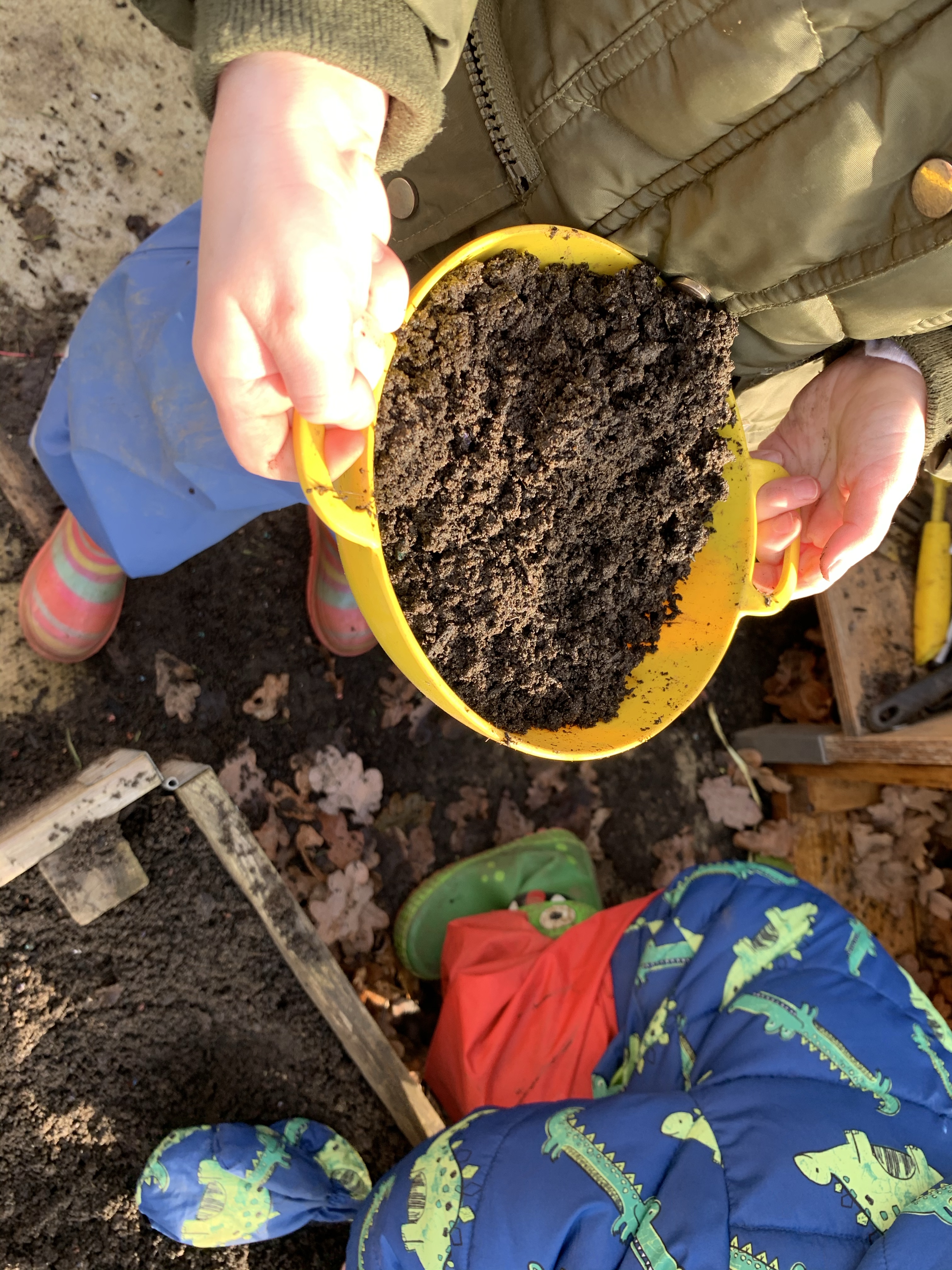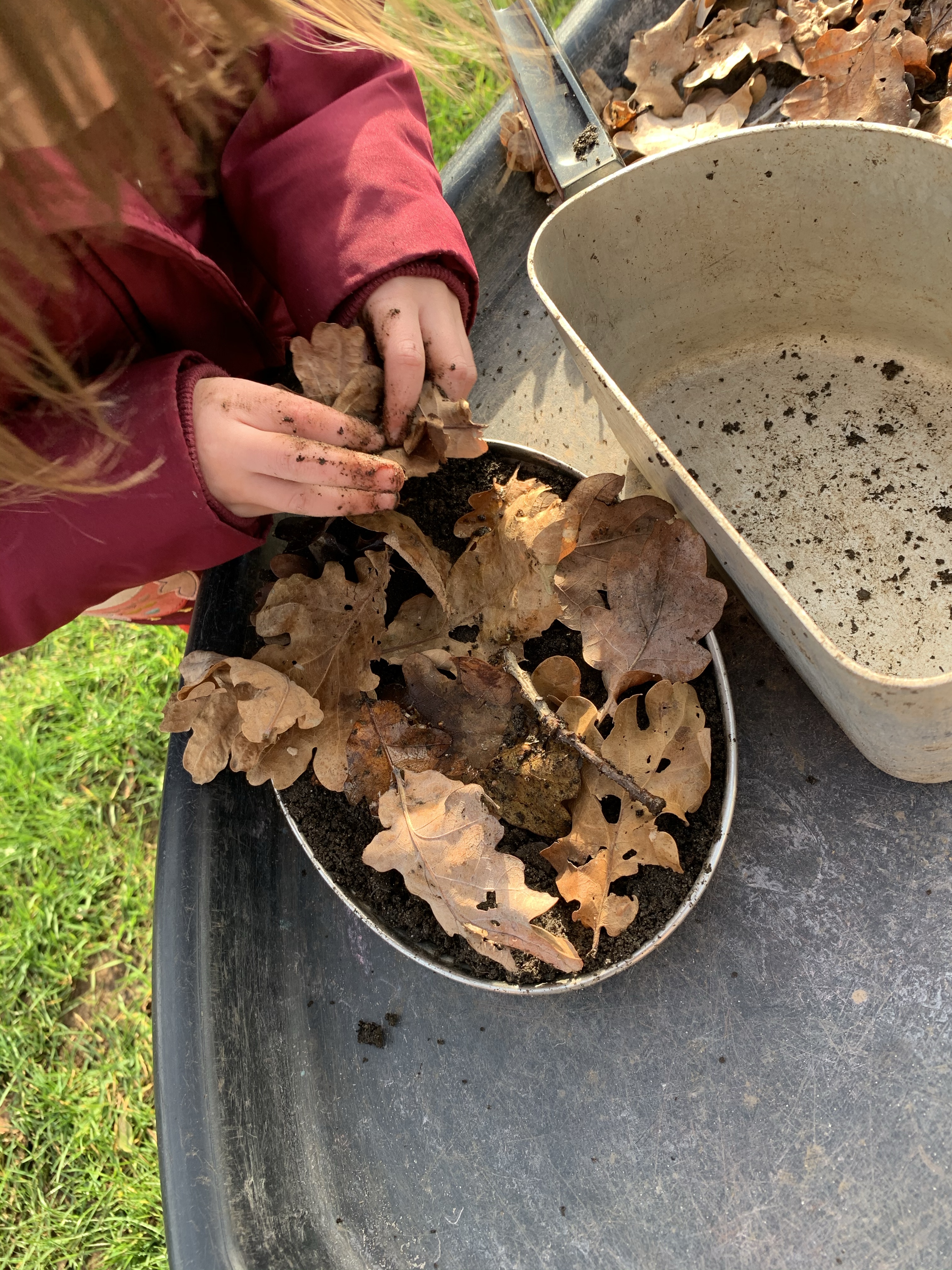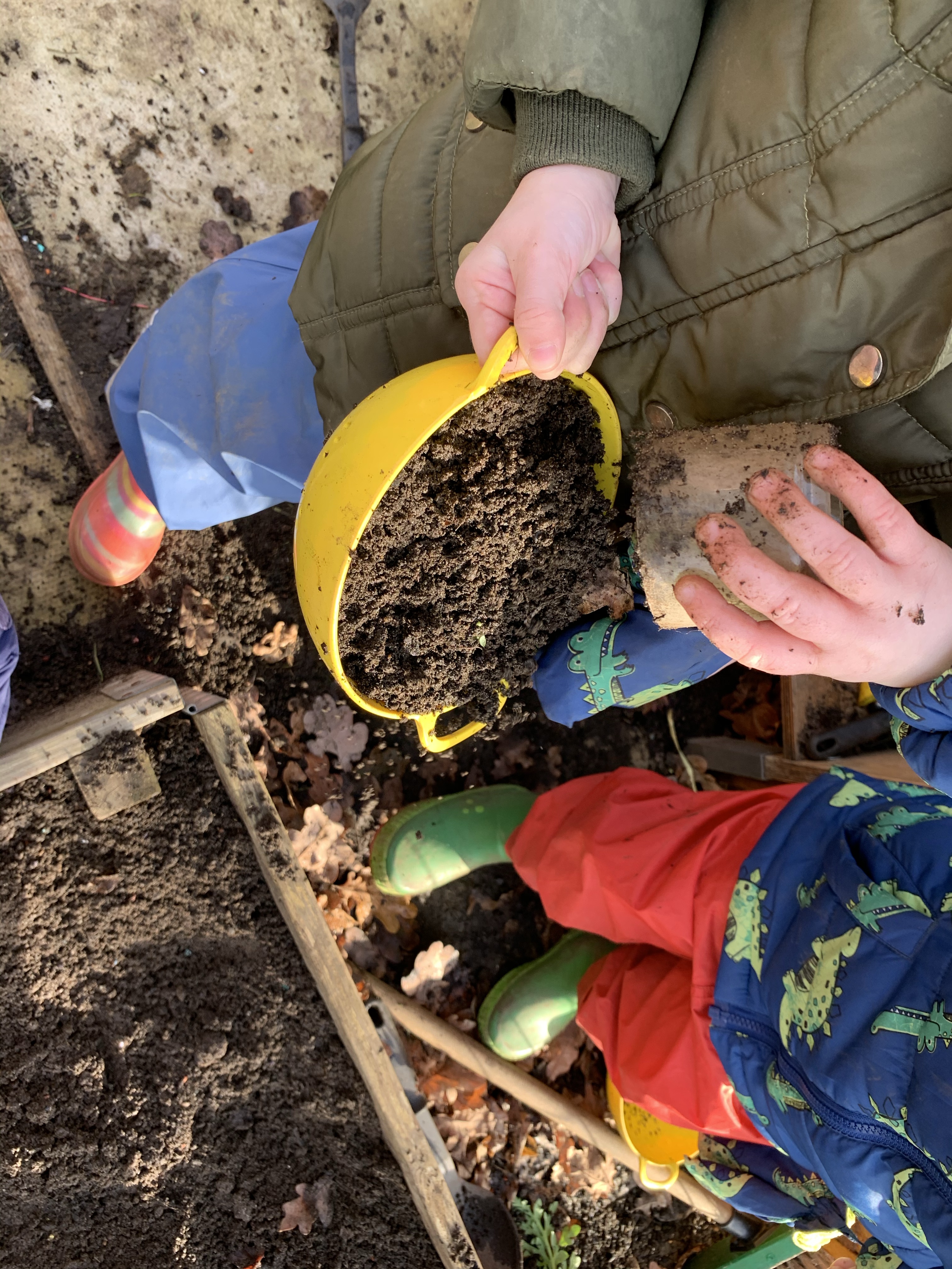 We love having flowers in, the children prepare them for their little vases, any left overs or ones that were damaged are used in their loose play and often become ‘food’.