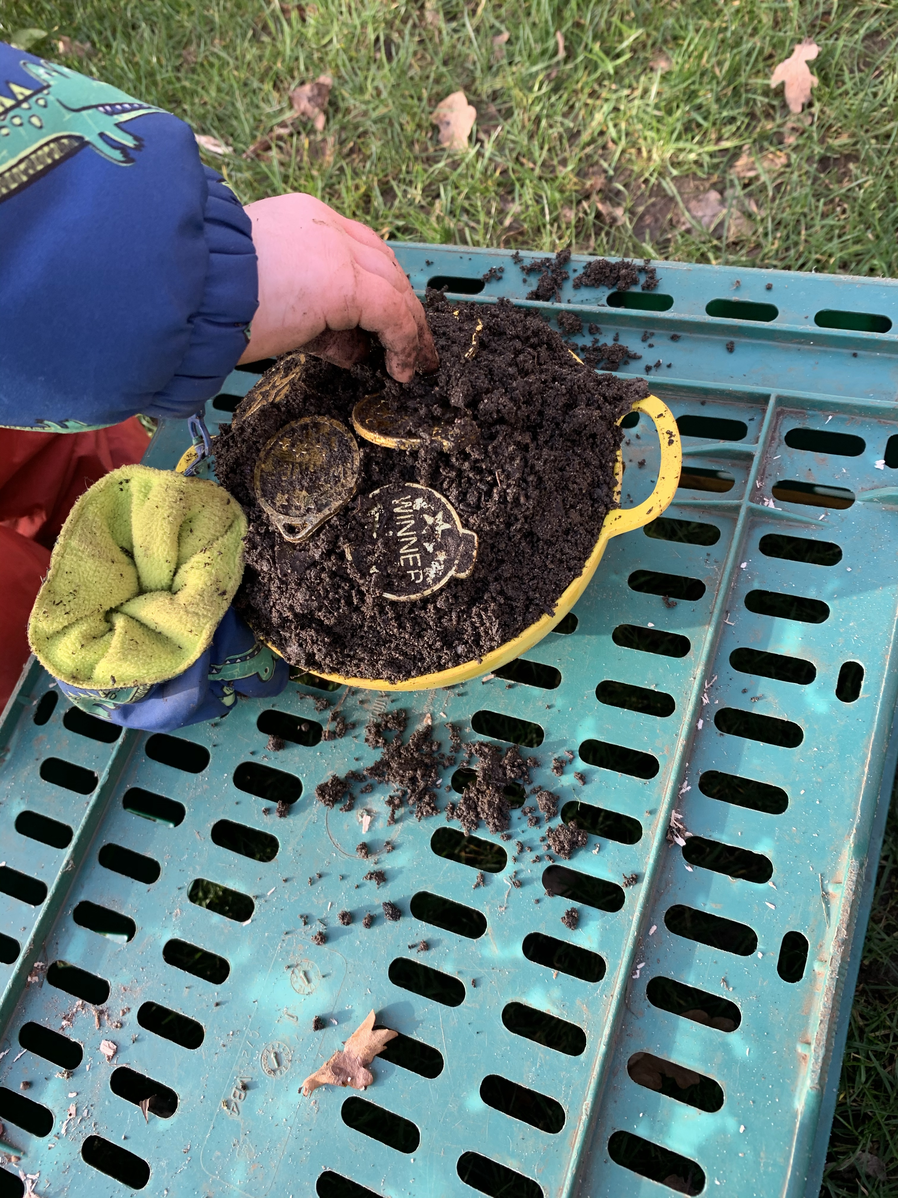 Working with nuts and bolts. The children really enjoy twisting and turning the nuts and bolts into the colander. They used the loose parts to make patterns and pictures based on their ideas. They were also used as a drum. There was lots of talk about what the bolts felt like- whether they were heavy, light, cold, ridged etc.